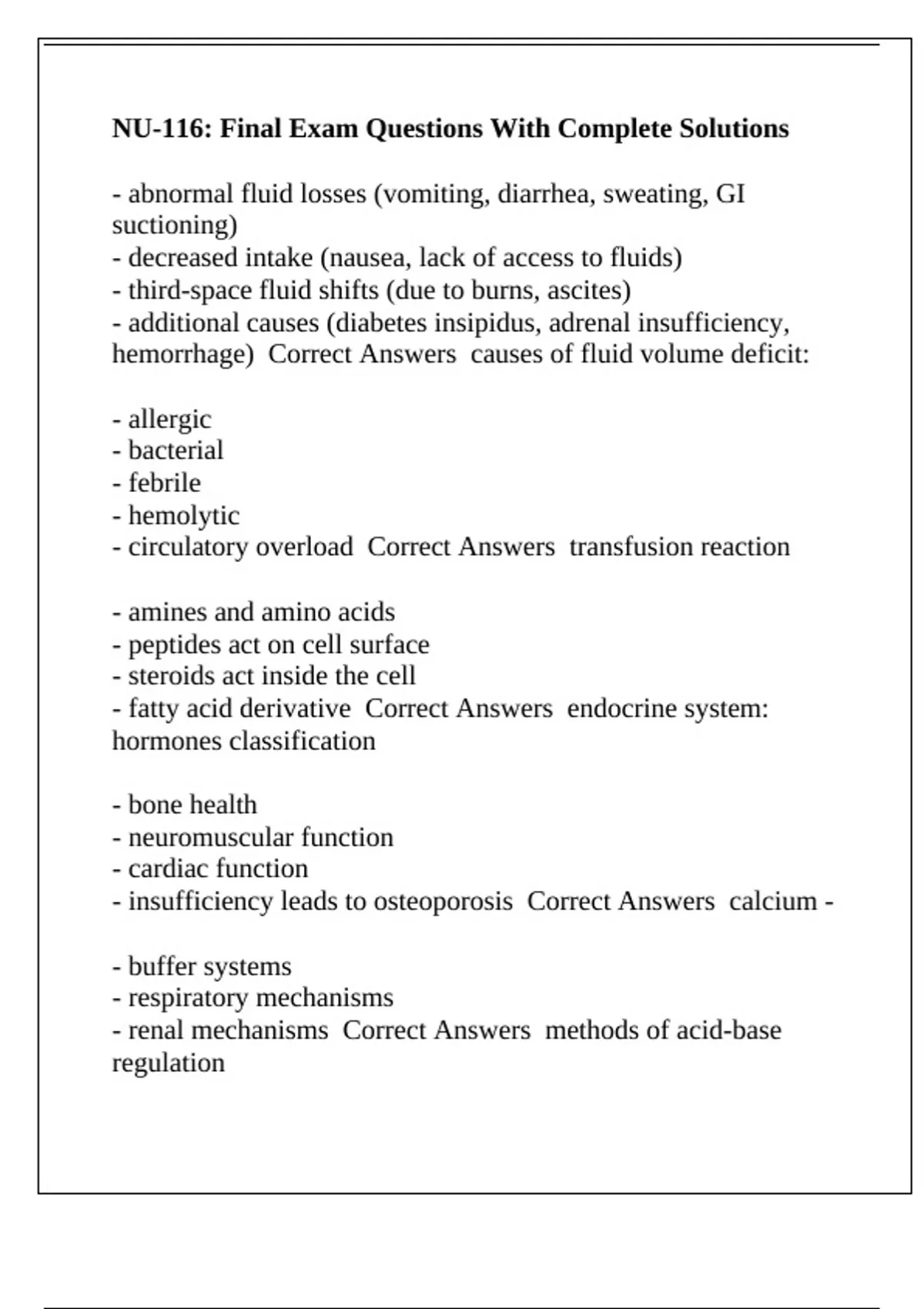 hemorrhage) Correct Answers causes of fluid volume deficit: