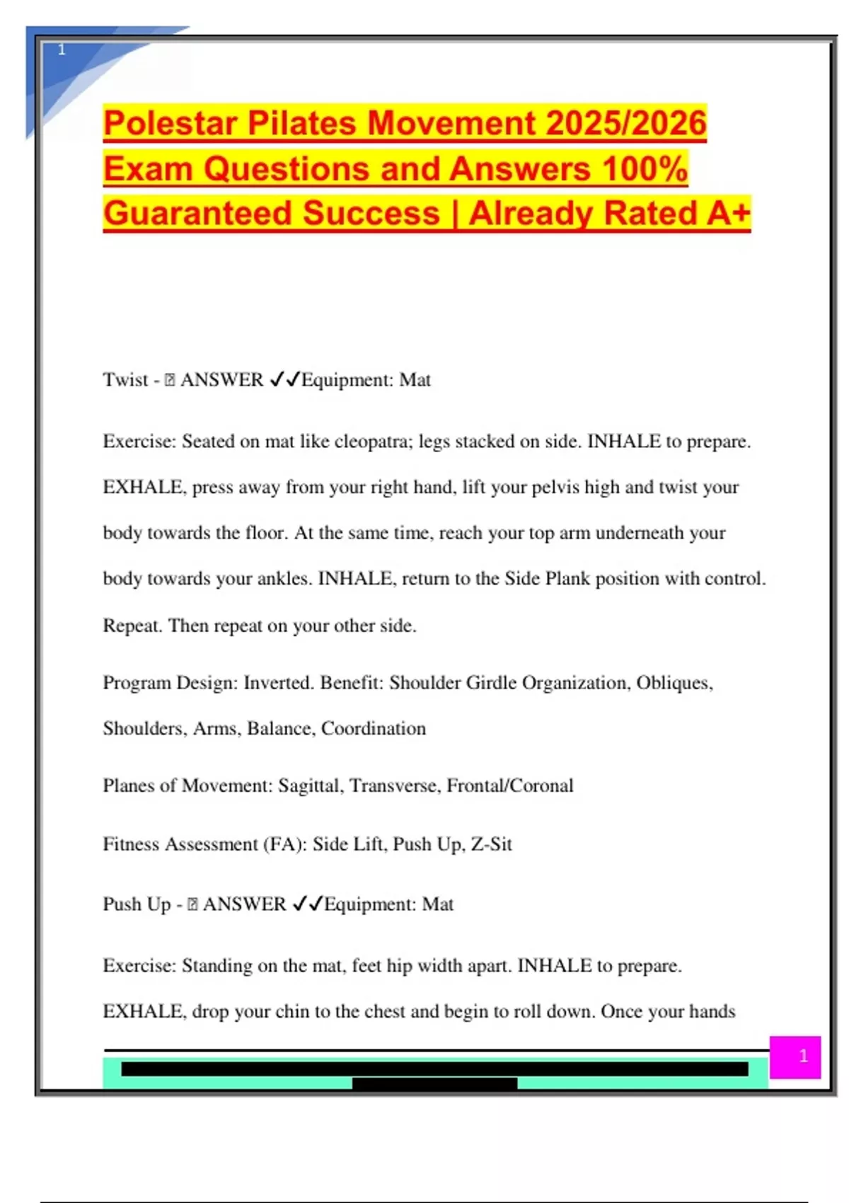 Push Up - 🧠 ANSWER ✔✔Equipment: Mat