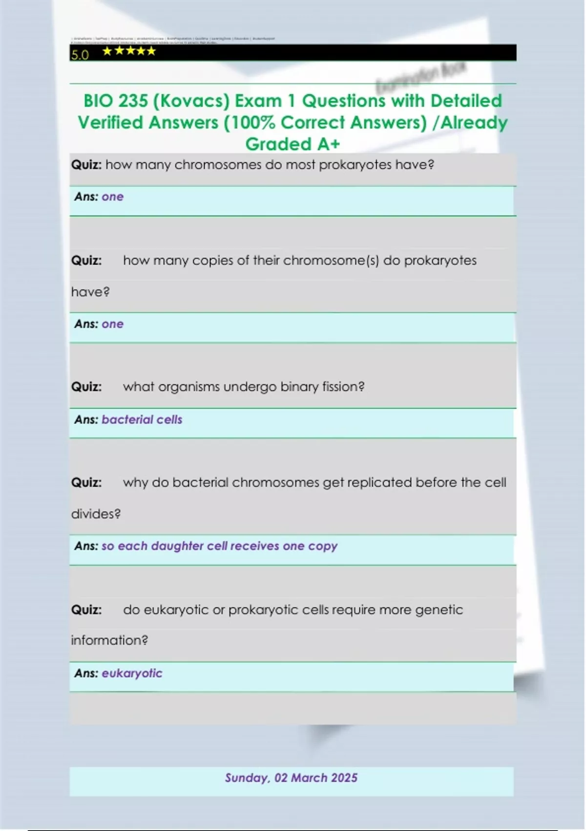 BIO 235 (Kovacs) Exam 1 Questions with Detailed