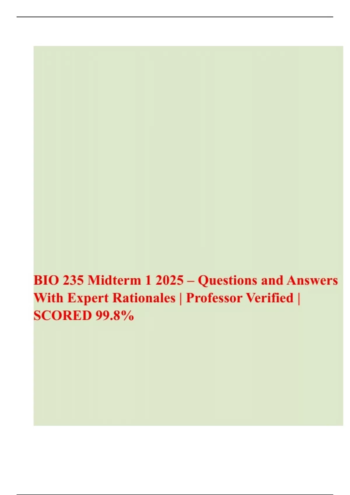 BIO 235 | Midterm 1 2025 – Questions and Answers With Expert Rationales | Professor Verified | SCORED 99.8%