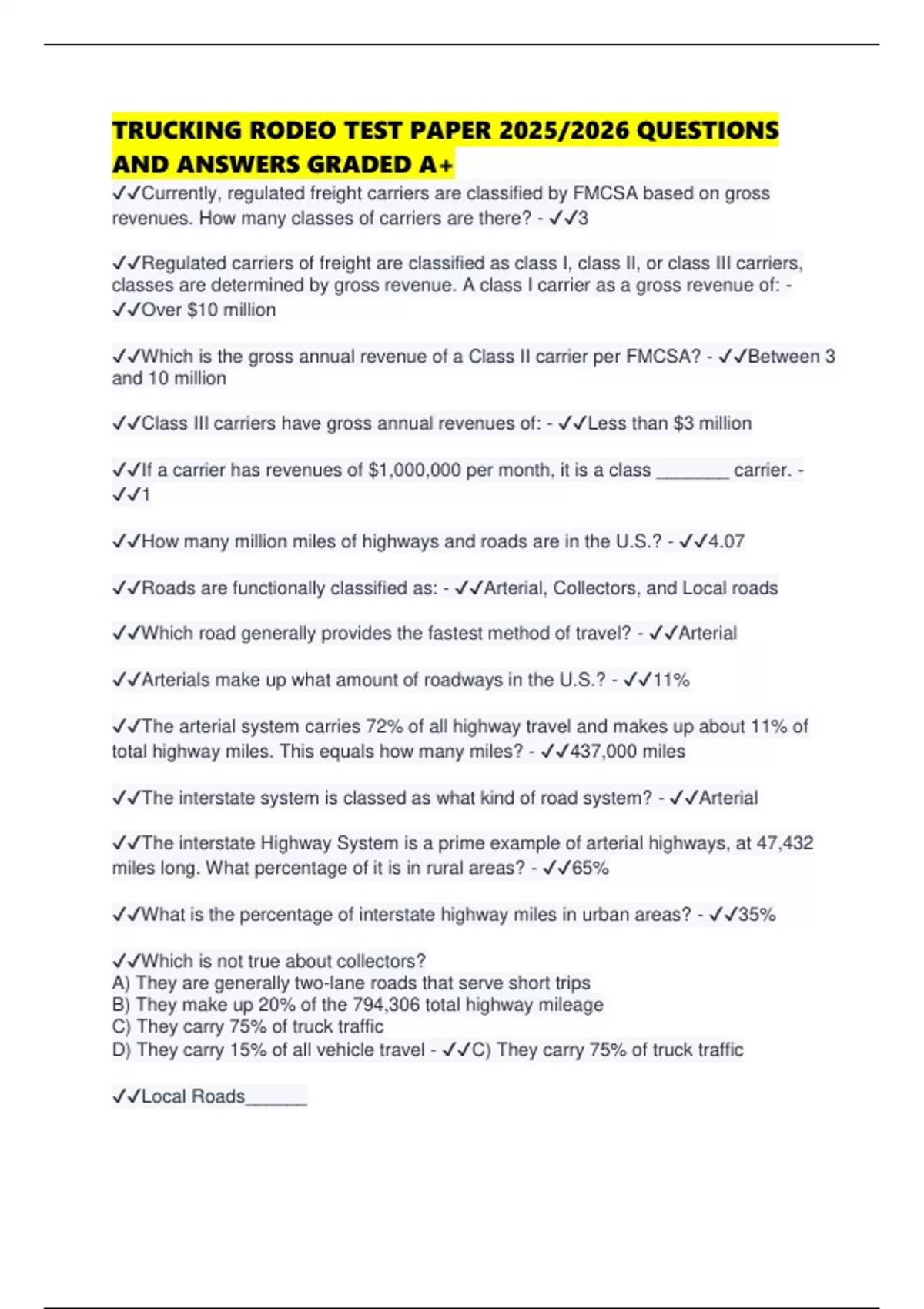 TRUCKING RODEO TEST PAPER 2025/2026 QUESTIONS AND ANSWERS GRADED A+