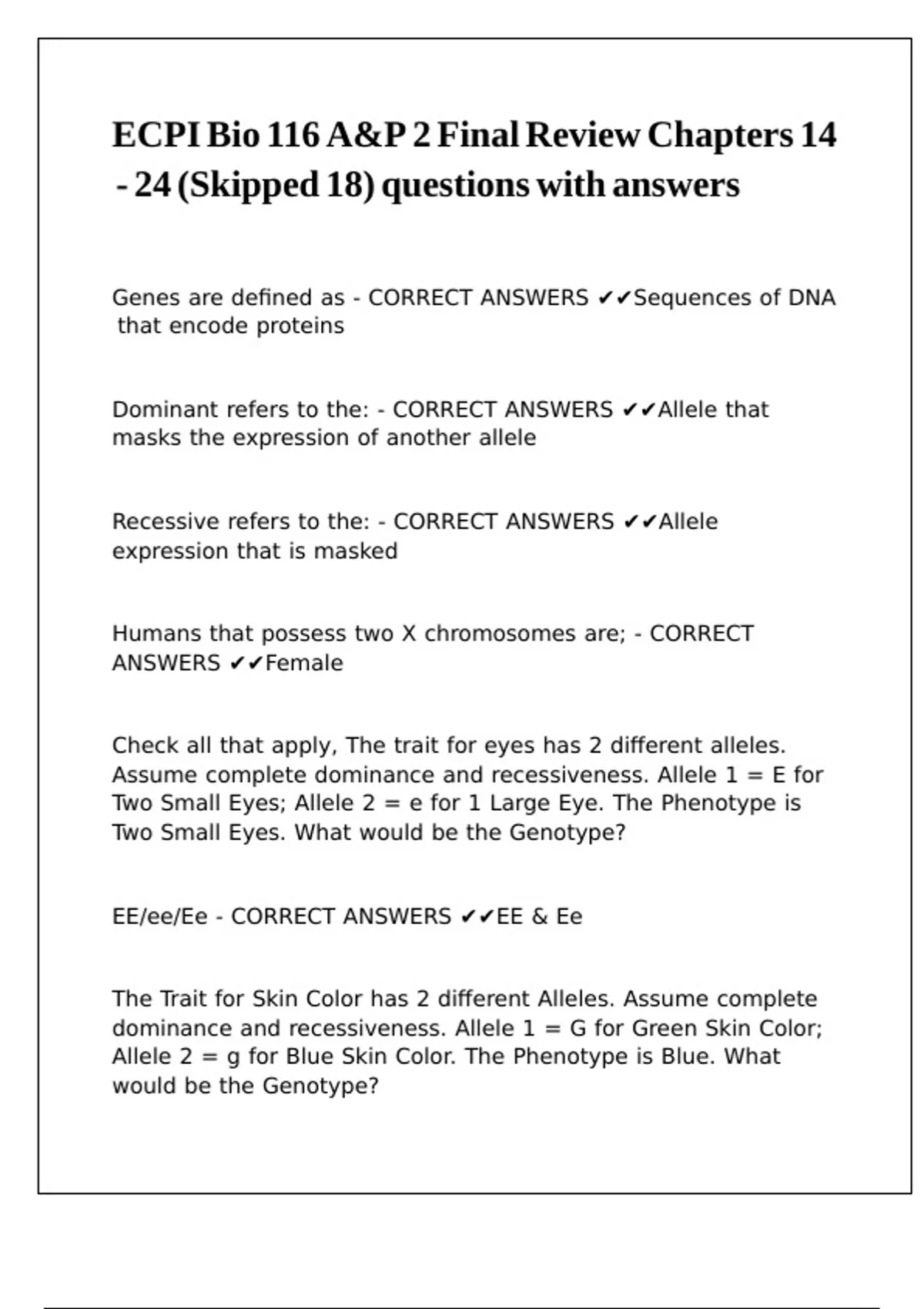 - CORRECT ANSWERS ✔✔Alleles