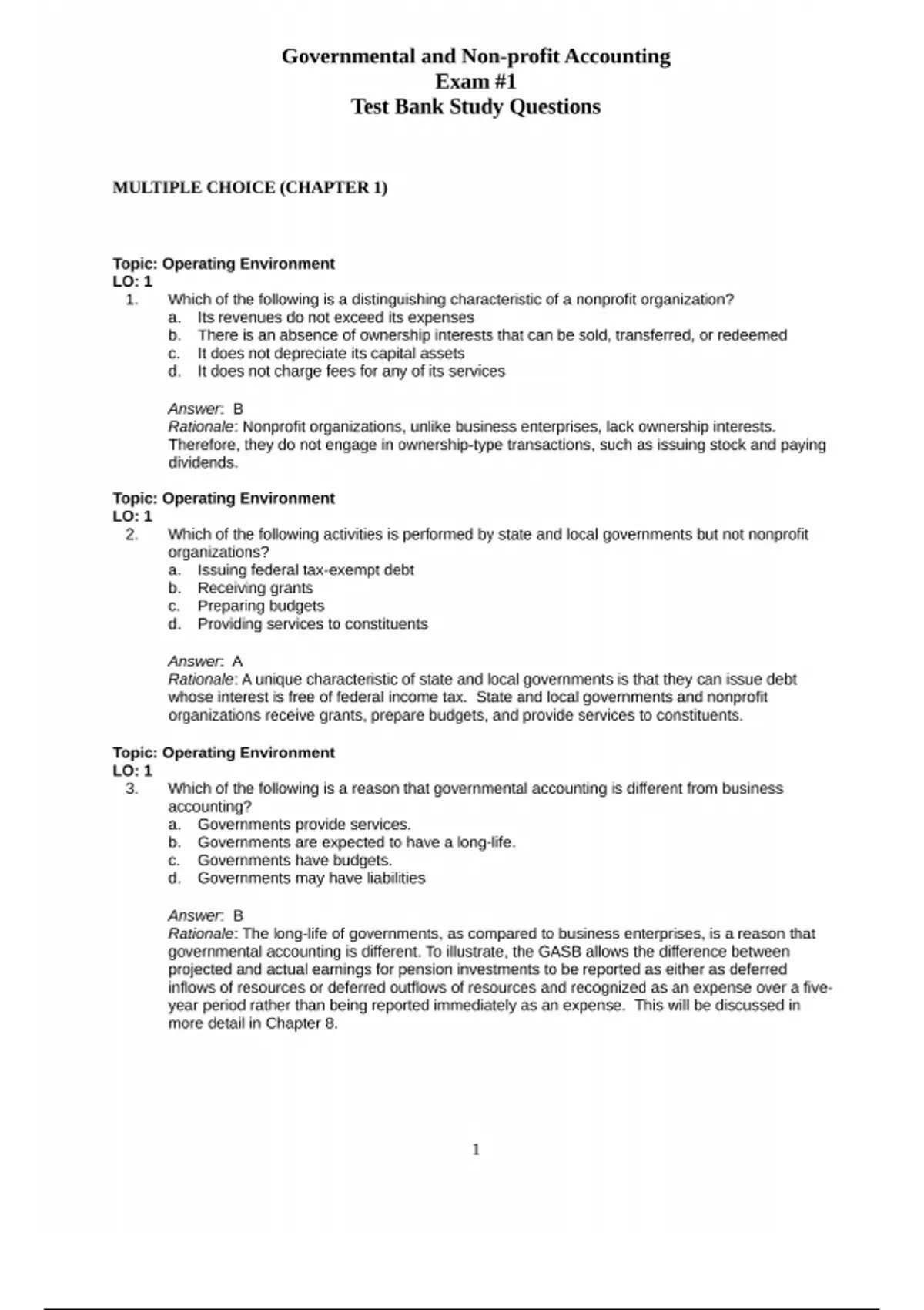 Governmental and Non-profit Accounting Exam #1 Test Bank Study Questions