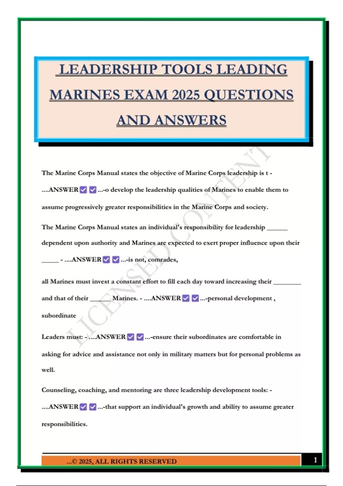 MARINES EXAM 2025 QUESTIONS