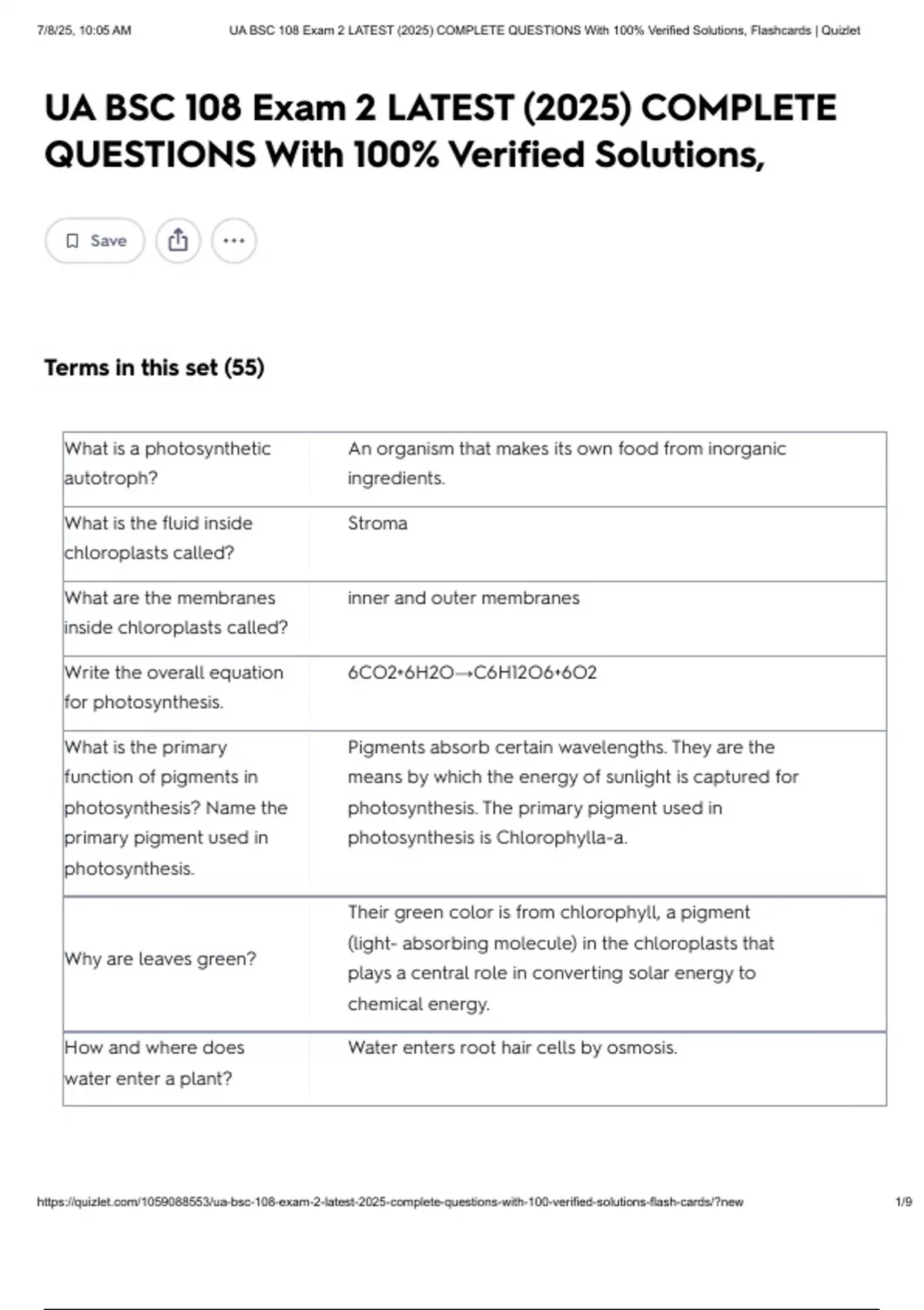 , 7/8/25, 10:05 AM UA BSC 108 Exam 2 LATEST (2025) COMPLETE QUESTIONS With 100% Verified Solutions, Flashcards | Quizlet