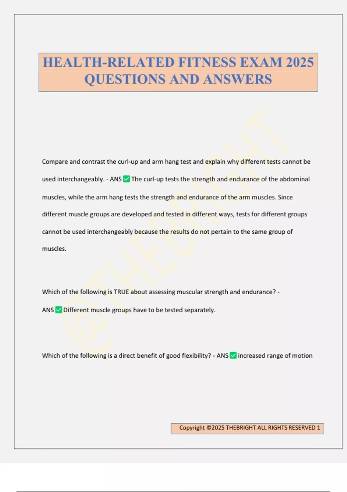 HEALTH-RELATED FITNESS EXAM 2025 QUESTIONS AND ANSWERS