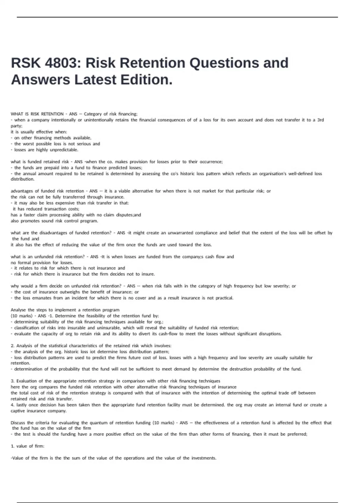 RSK 4803: Risk Retention Questions and