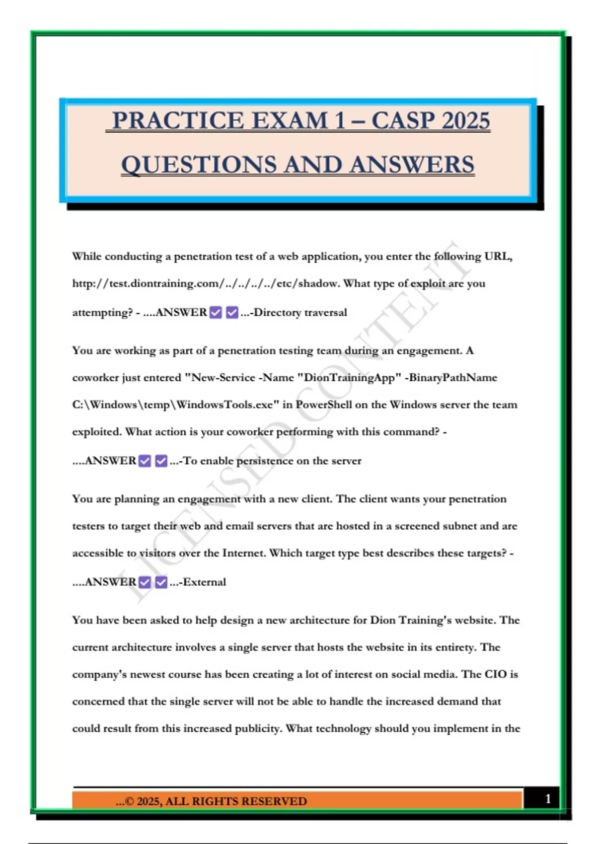 PRACTICE EXAM 1 – CASP 2025