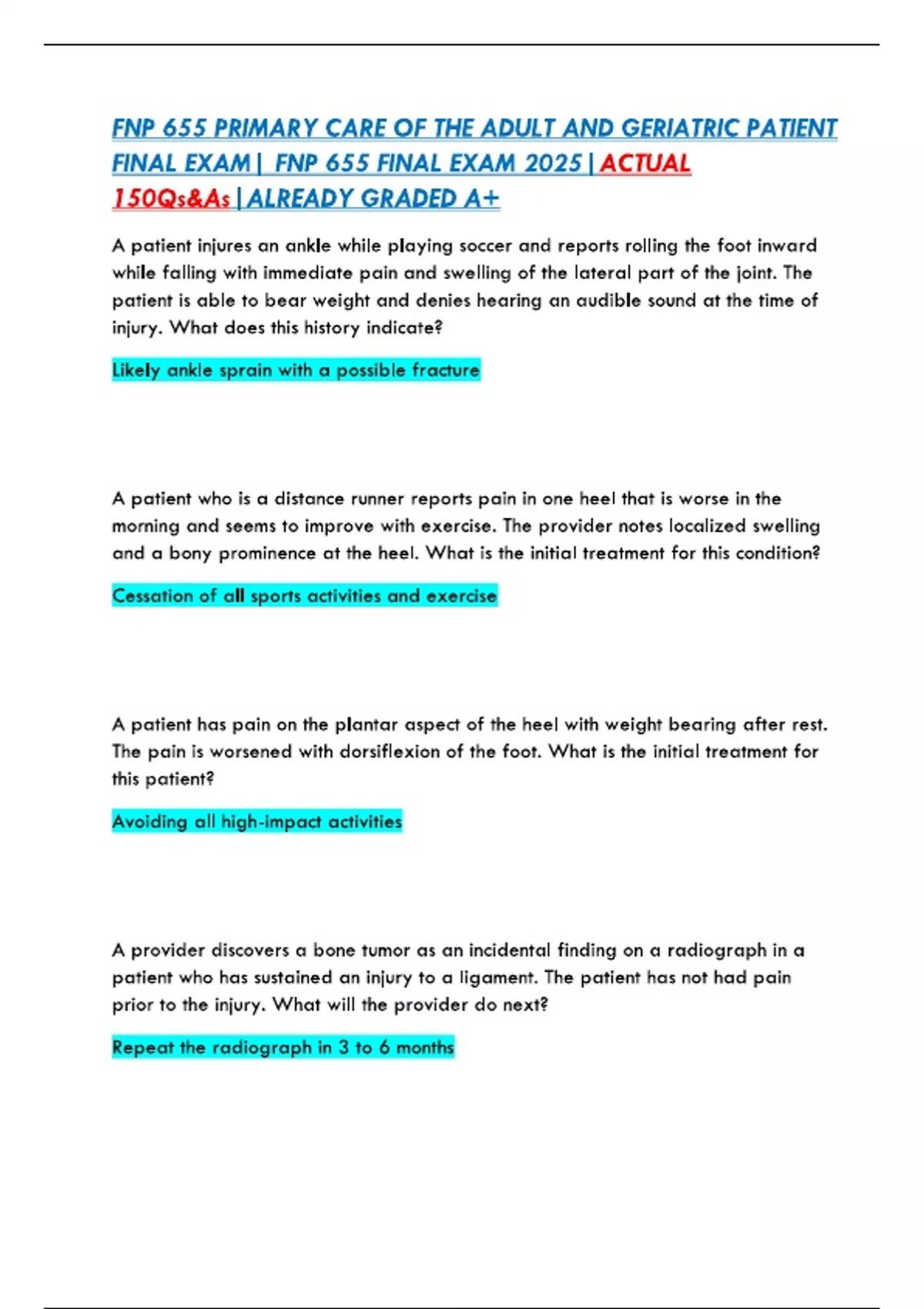 FNP 655 PRIMARY CARE OF THE ADULT AND GERIATRIC PATIENT FINAL EXAM| FNP 655 FINAL EXAM 2025|ACTUAL 150Qs&As|ALREADY GRADED A+