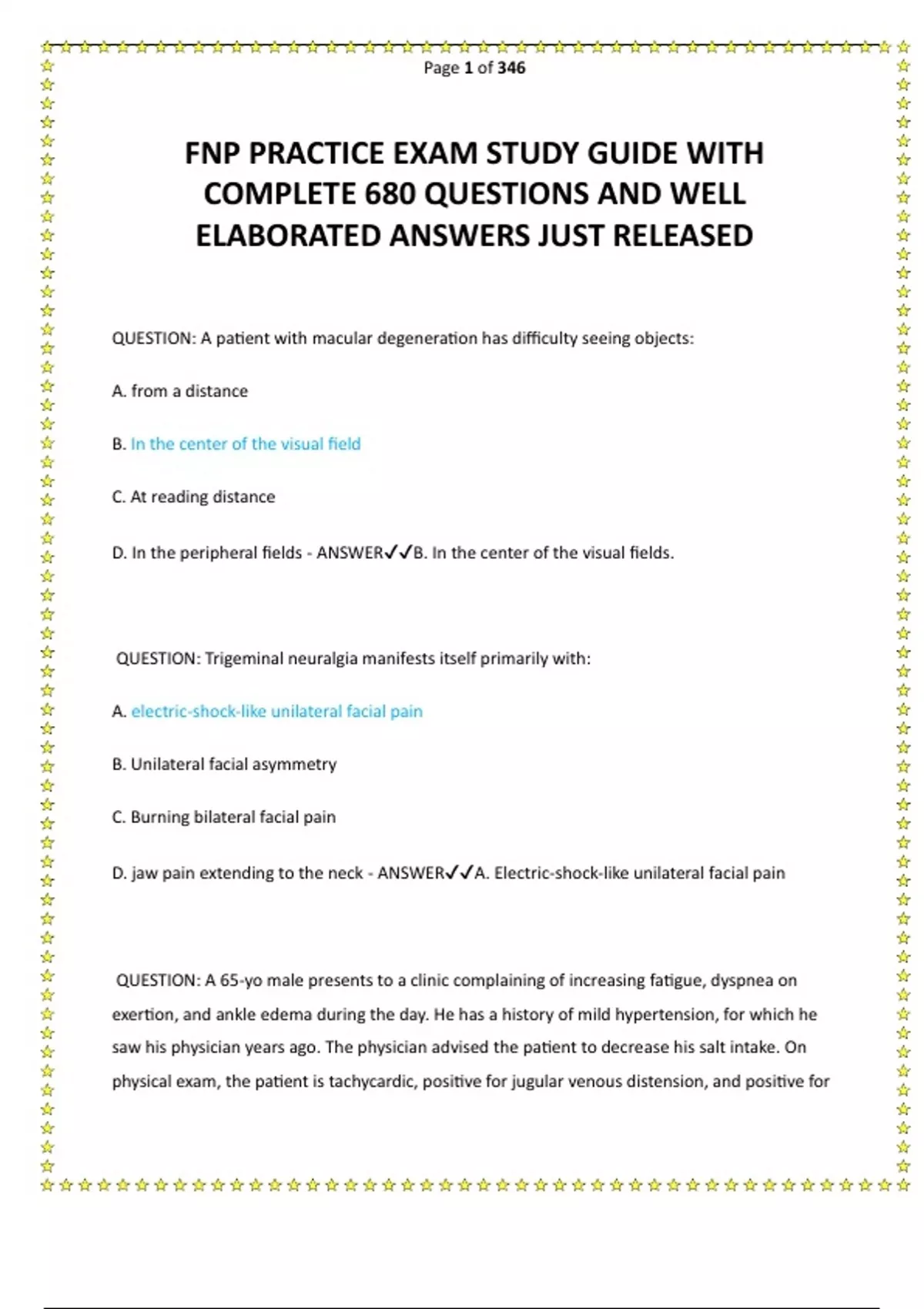 FNP PRACTICE EXAM STUDY GUIDE WITH