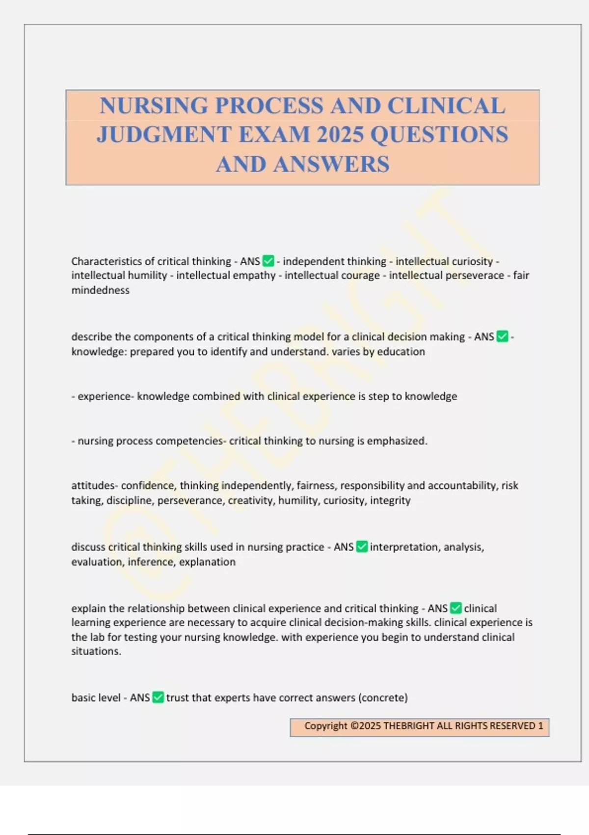 discuss the relationship of the nursing process to critical thinking - ANS nursing process is a