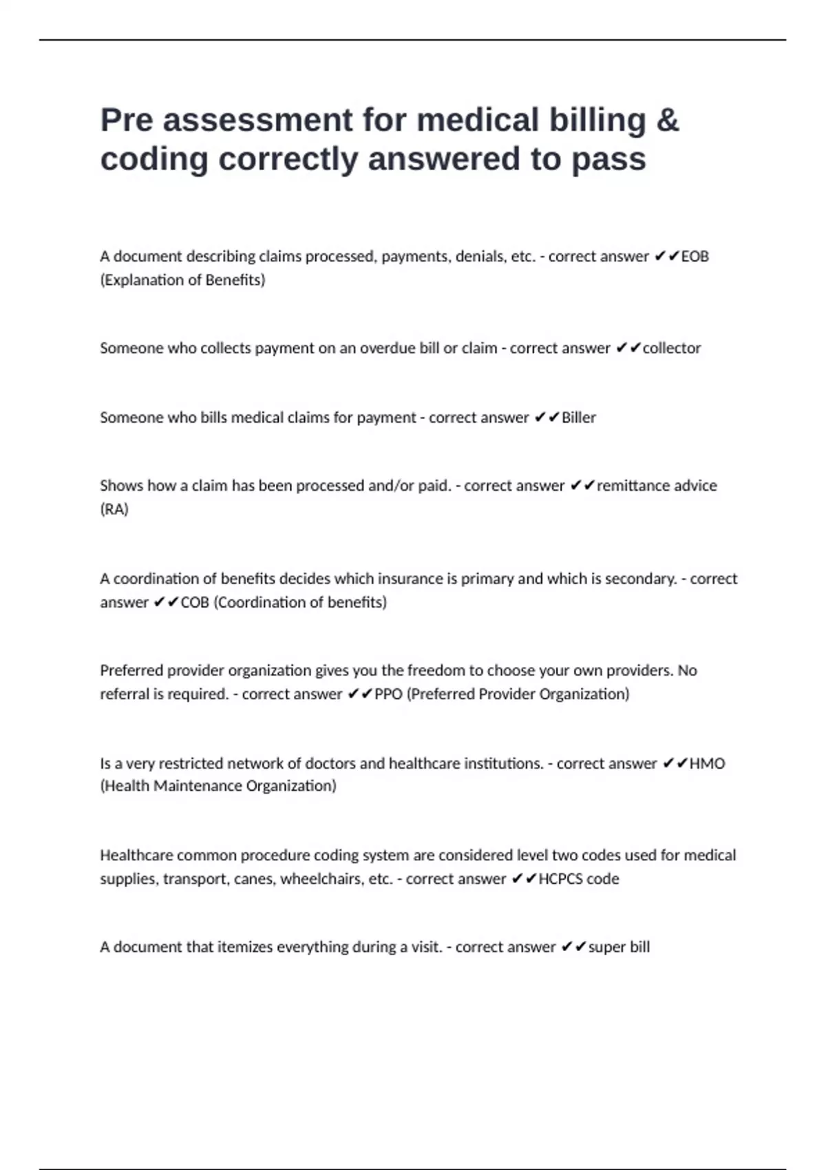 A document that itemizes everything during a visit. - correct answer ✔✔super bill