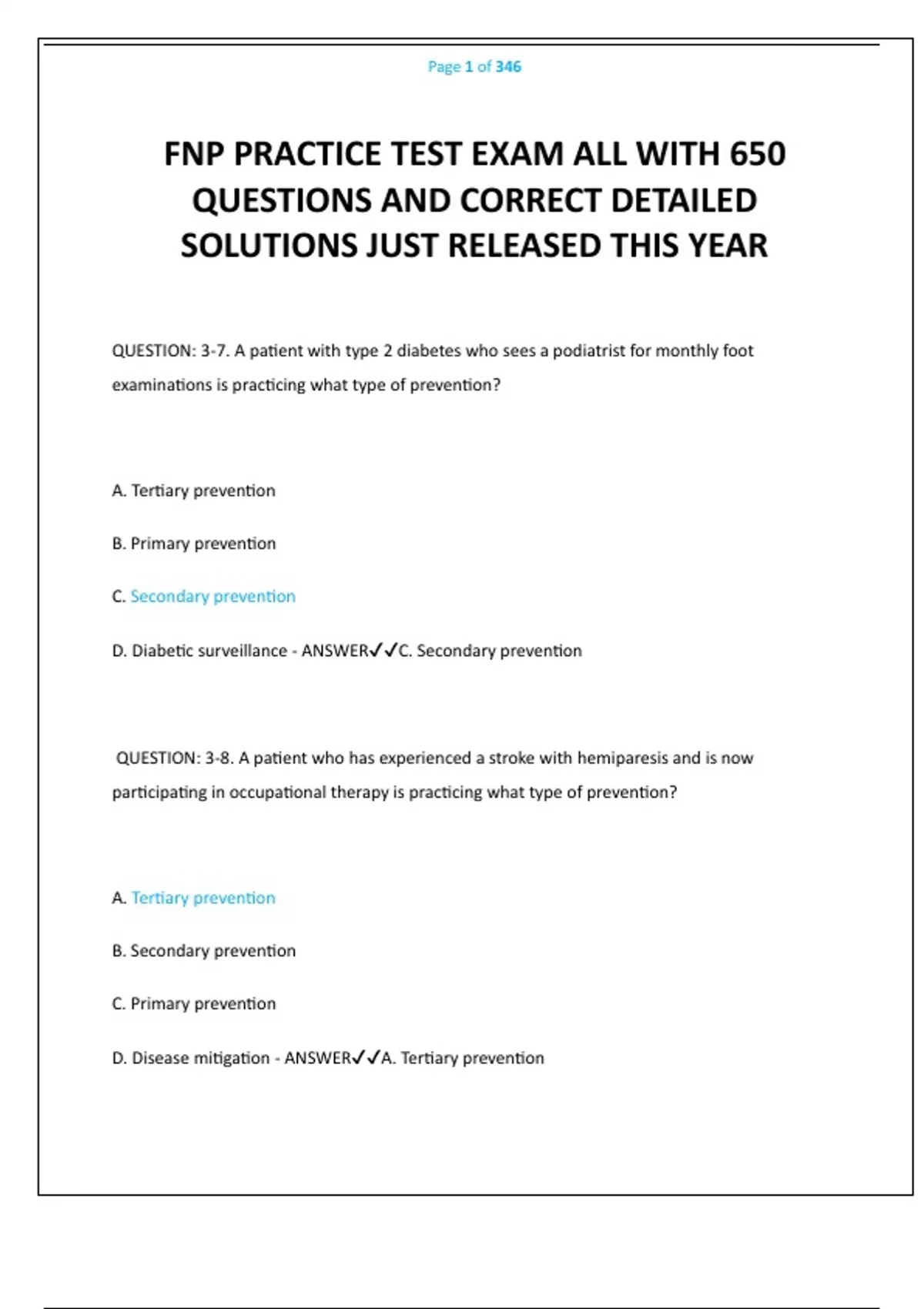 FNP PRACTICE TEST EXAM ALL WITH 650