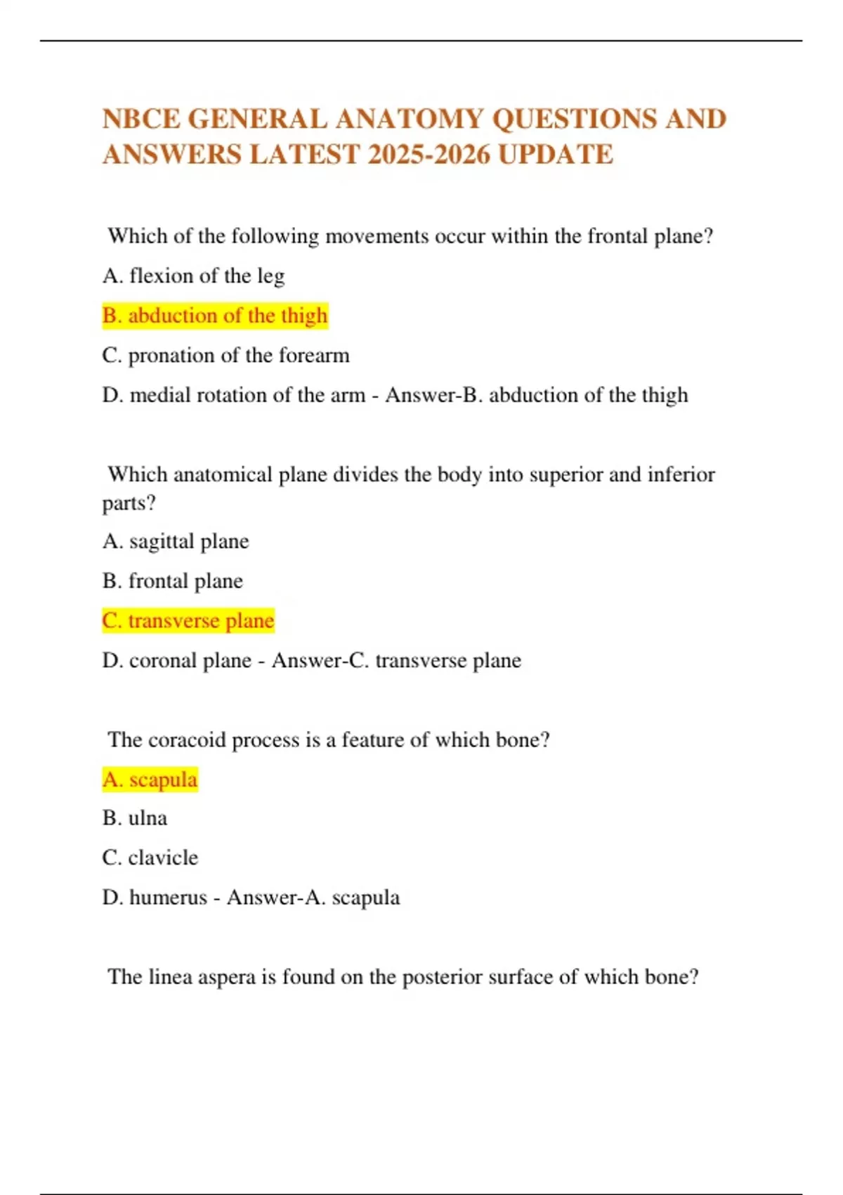 NBCE GENERAL ANATOMY QUESTIONS AND ANSWERS LATEST UPDATENBCE GENERAL ANATOMY QUESTIONS AND ANSWERS LATEST UPDATENBCE GENERAL ANATOMY QUESTIONS AND ANSWERS LATEST UPDATE