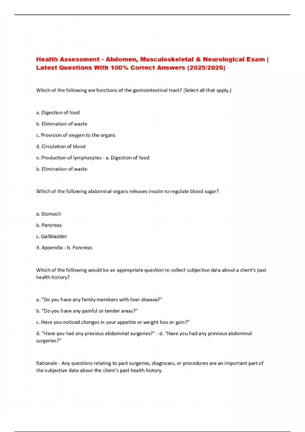 Health Assessment - Abdomen, Musculoskeletal & Neurological Exam | Latest Questions With 100% Correct Answers (2025/2026)