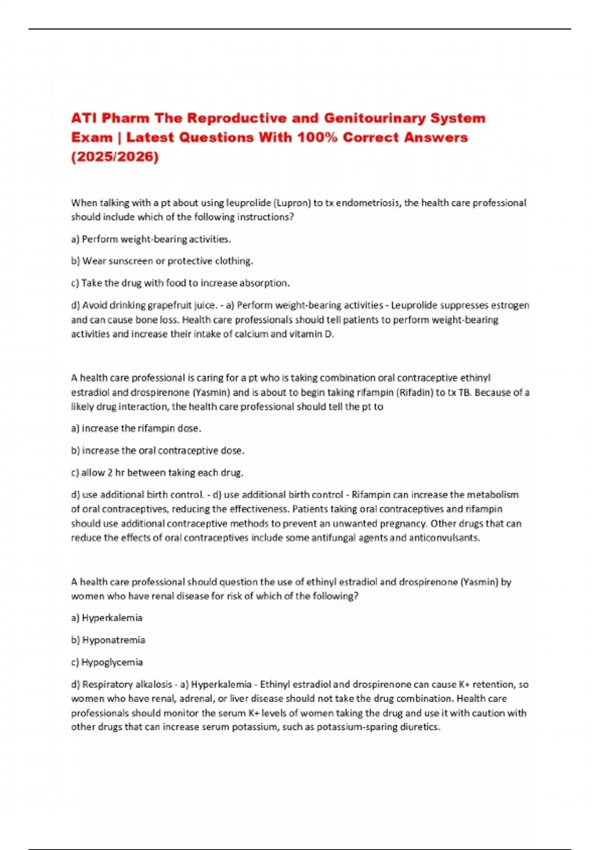 ATI Pharm The Reproductive and Genitourinary System Exam | Latest Questions With 100% Correct Answers (2025/2026)