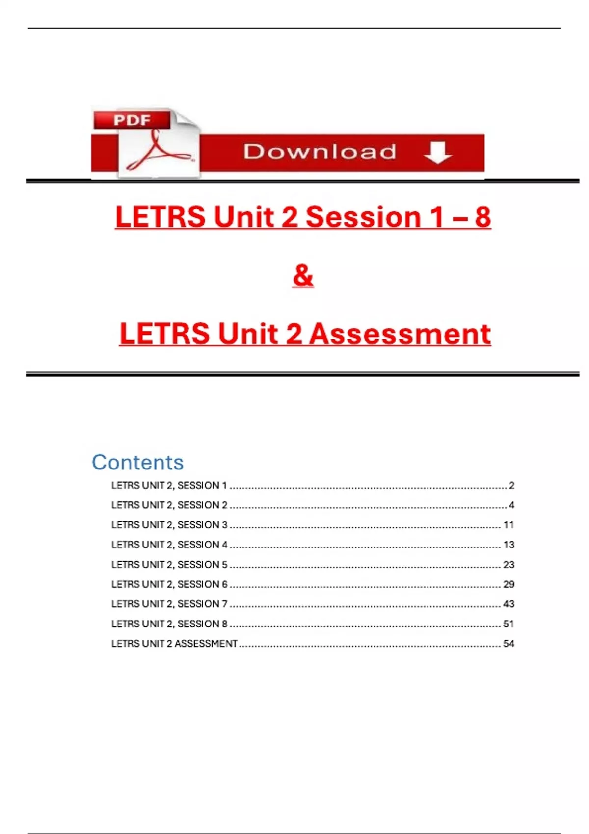 This document covers all sessions (1–8) of LETRS Unit 2, focusing on the science of reading and essential components of effective literacy instruction. Topics include phonological awareness, phonics, speech sounds, and instructional strategies based on reading research. Ideal for educators and trainees seeking a deep understanding of structured literacy practices.