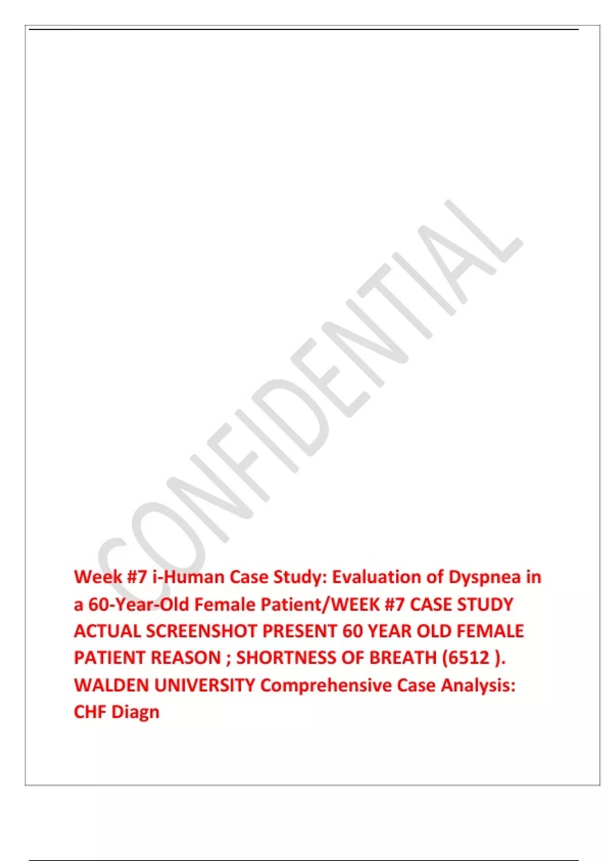 a 60-Year-Old Female Patient/WEEK #7 CASE STUDY