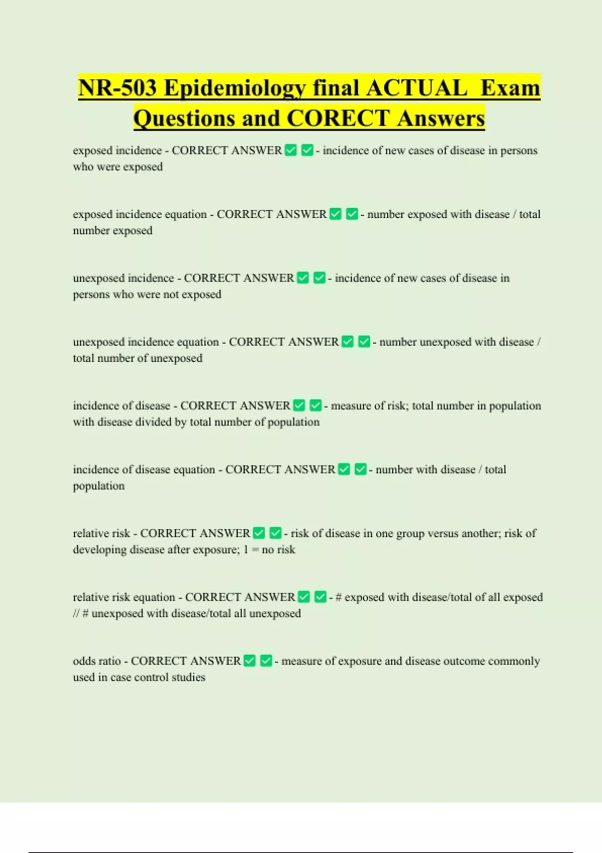 exposed incidence equation - CORRECT ANSWER - number exposed with disease / total