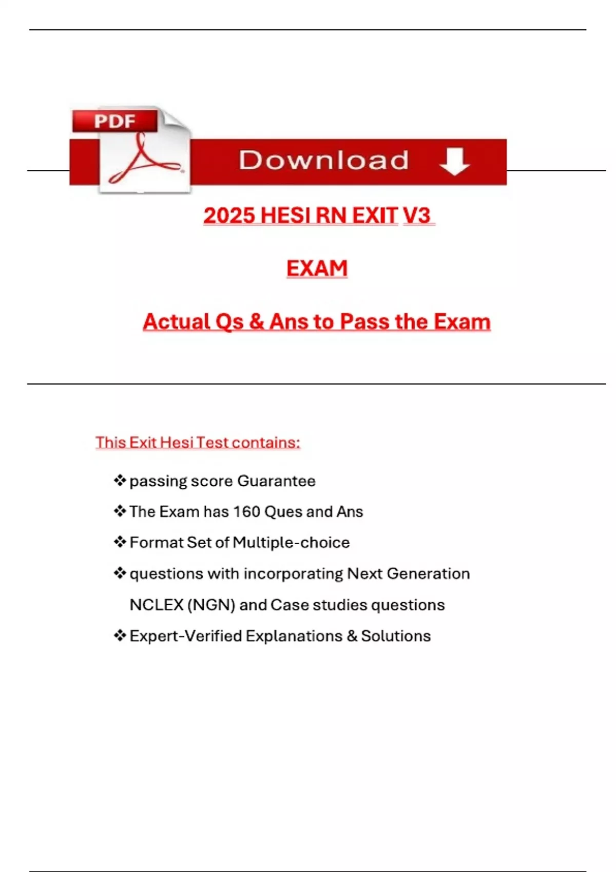 Pass the 2025 HESI RN Exit Exam V3 with NGN-style questions, correct answers, and detailed rationales. Proven strategies with 100% pass guarantee.