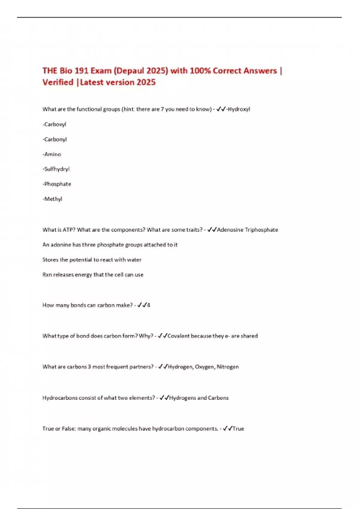 THE Bio 191 Exam (Depaul 2025) with 100% Correct Answers | Verified |Latest version 2025