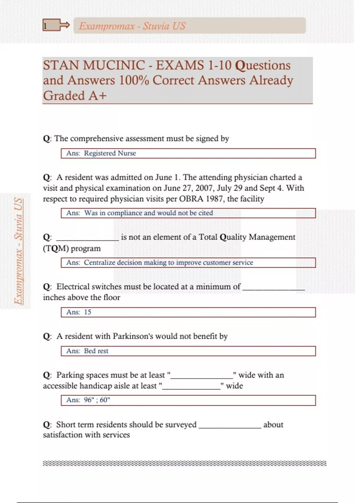 STAN MUCINIC - EXAMS 1-10 Questions and Answers 100% Correct Answers Already Graded A+