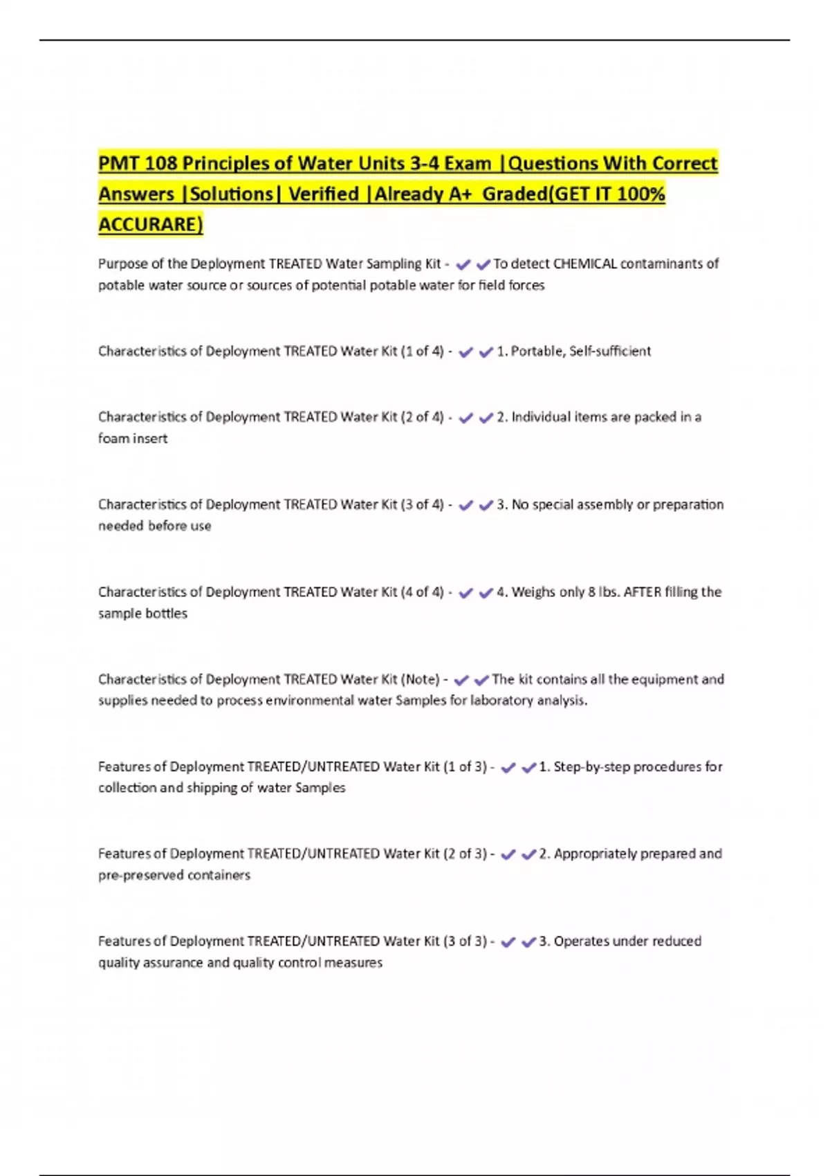 PMT 108 Principles of Water Units 3-4 Exam |Questions With Correct Answers |Solutions| Verified |Already A+ Graded(GET IT 100% ACCURARE)