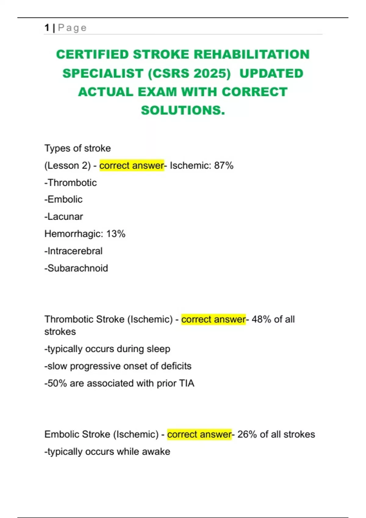 CERTIFIED STROKE REHABILITATION SPECIALIST (CSRS 2025) UPDATED ACTUAL EXAM WITH CORRECT SOLUTIONS.
