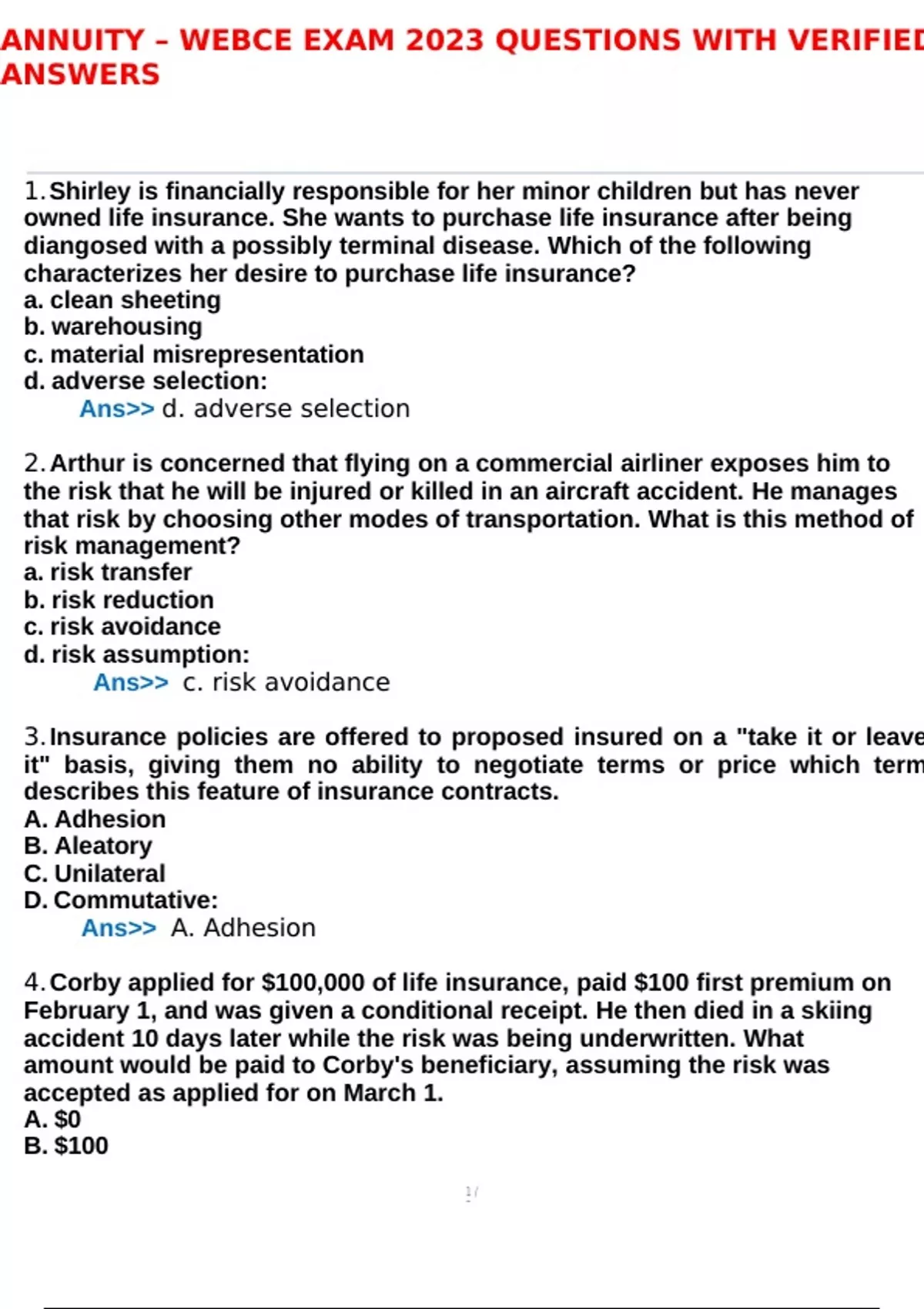 ANNUITY – WEBCE EXAM 2023 QUESTIONS WITH VERIFIED