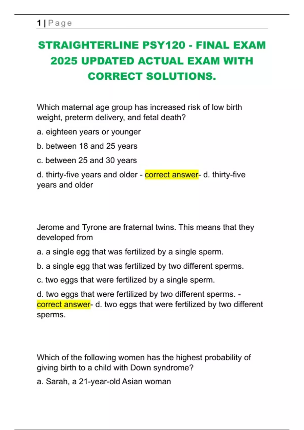STRAIGHTERLINE PSY120 - FINAL EXAM