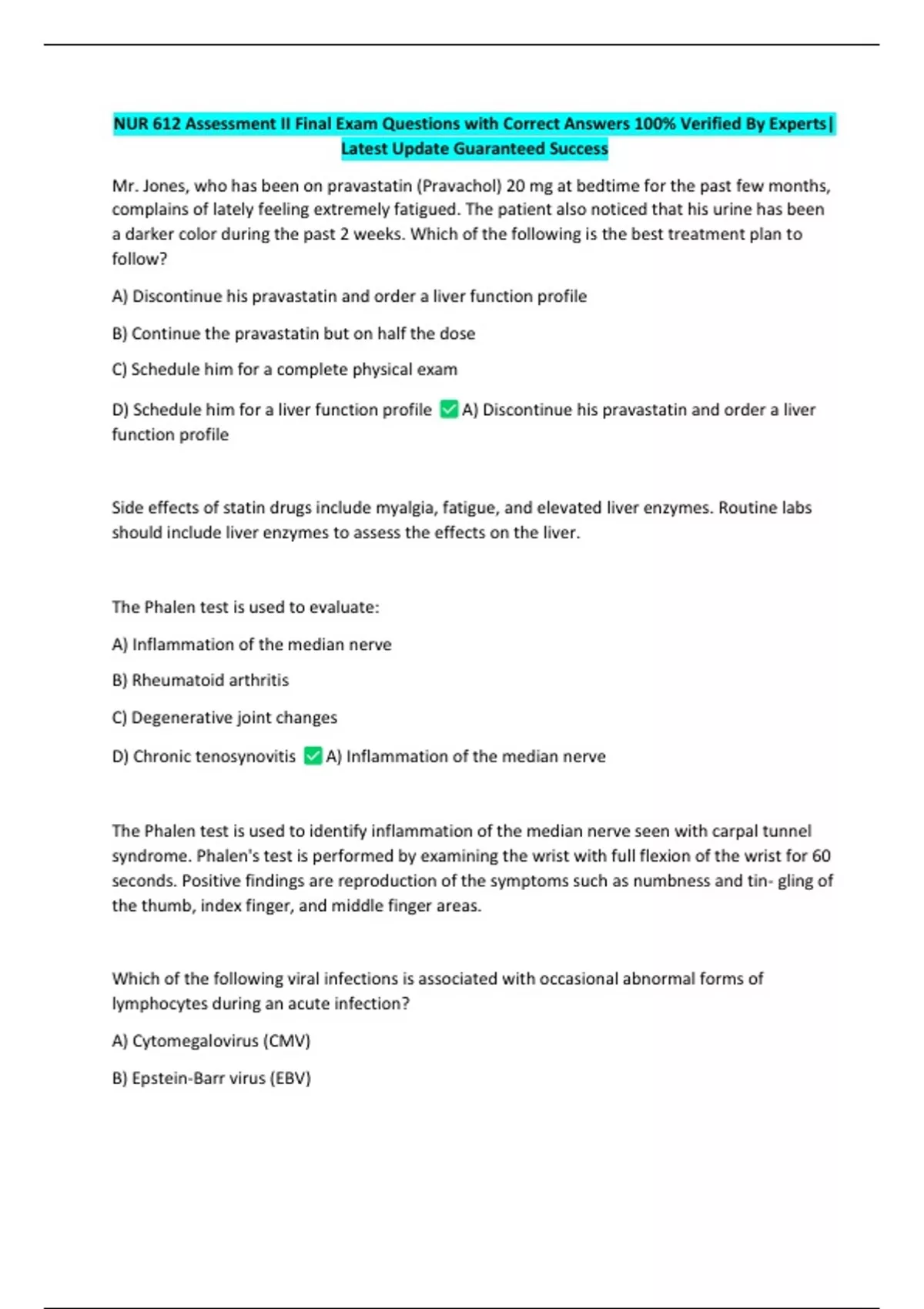 NUR 612 Assessment II Final Exam Questions with Correct Answers 100% Verified By Experts| Latest Update Guaranteed Success