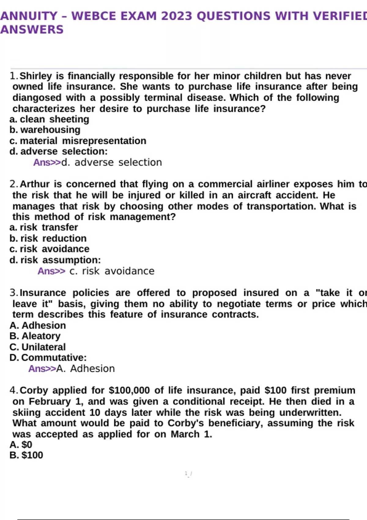 ANNUITY – WEBCE EXAM 2023 QUESTIONS WITH VERIFIED