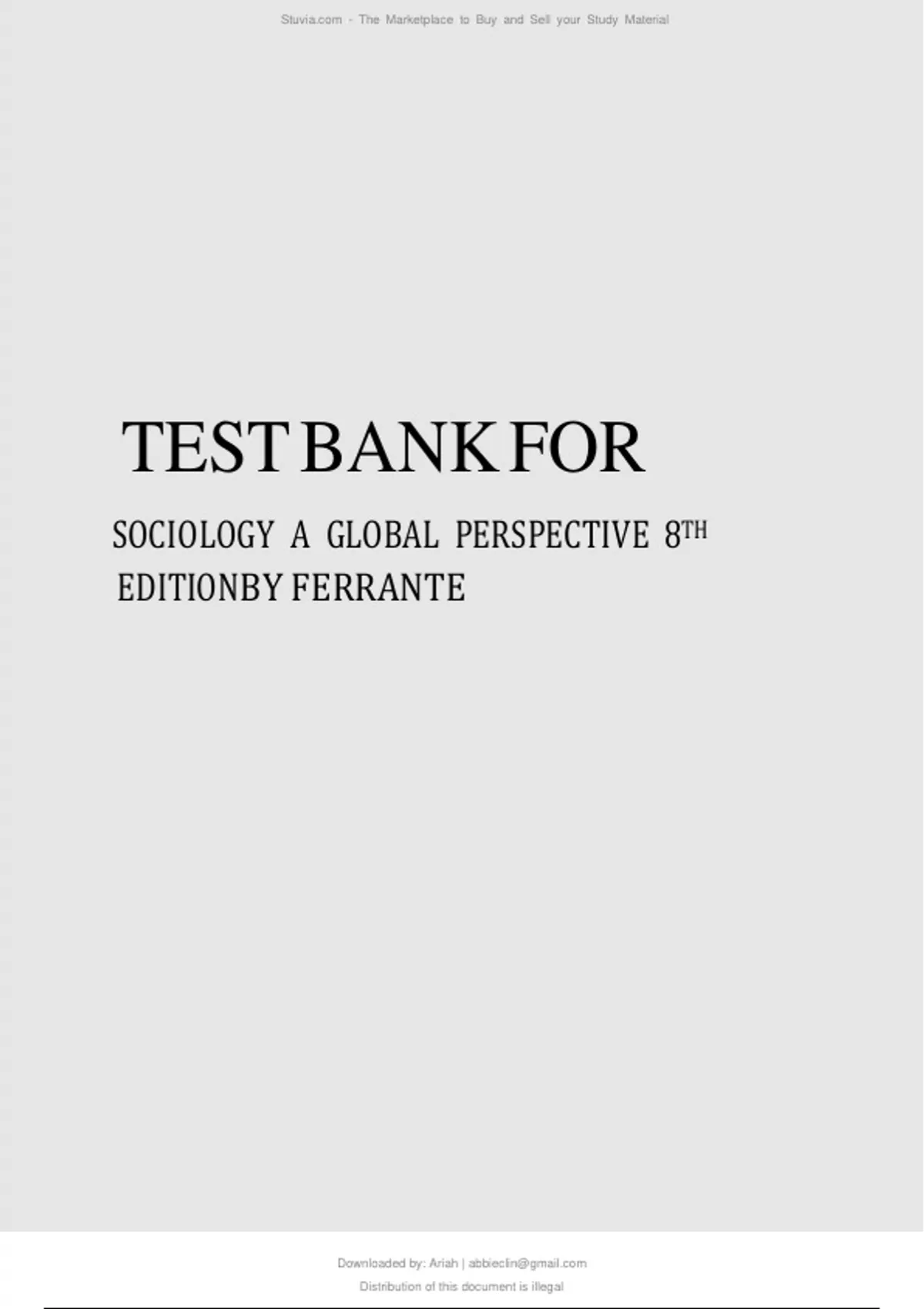 TEST BANK FOR SOCIOLOGY A GLOBAL PERSPECTIVE 8TH EDITION BY FERRANTE Graded A Plus.