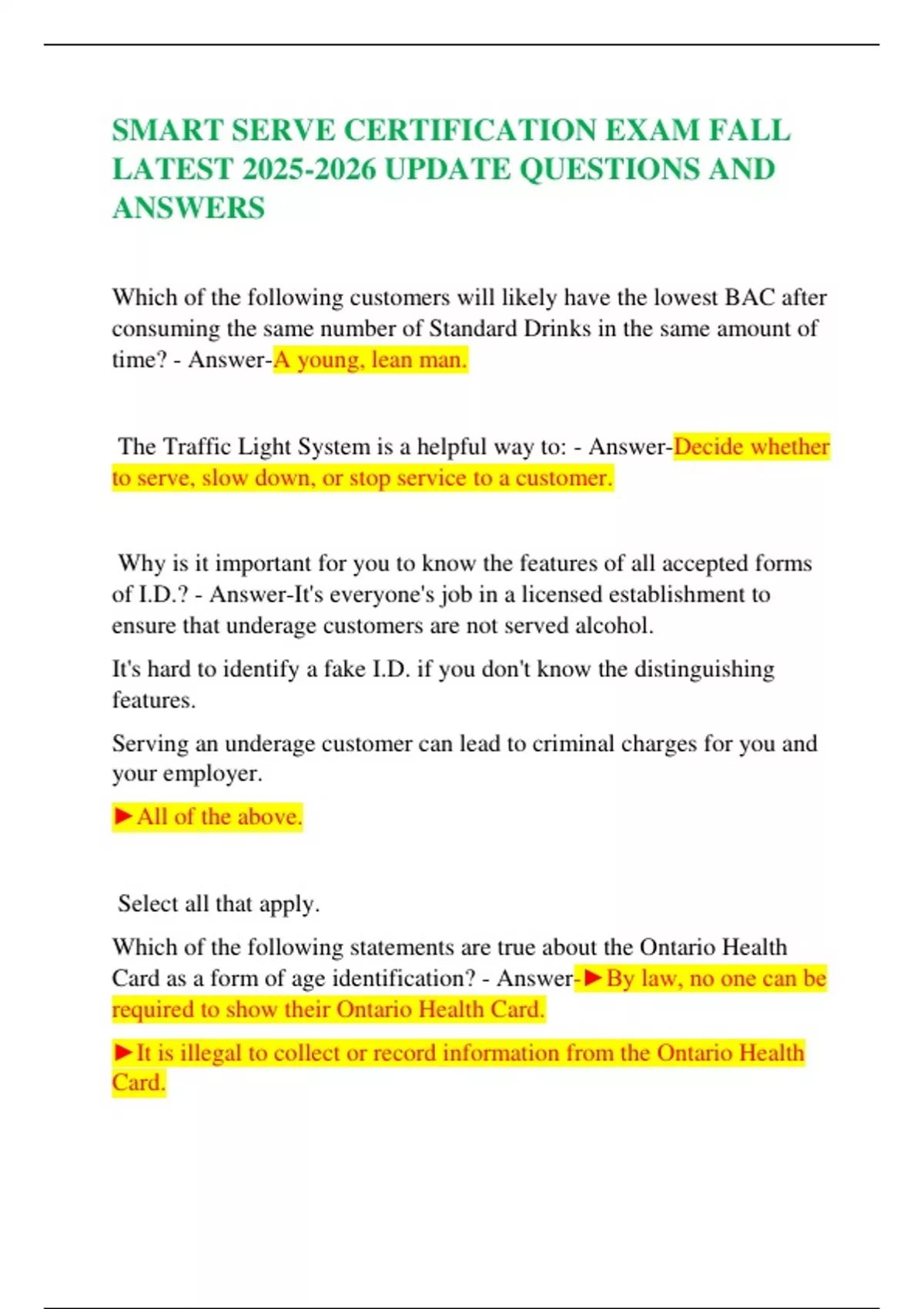 SMART SERVE CERTIFICATION EXAM FALL