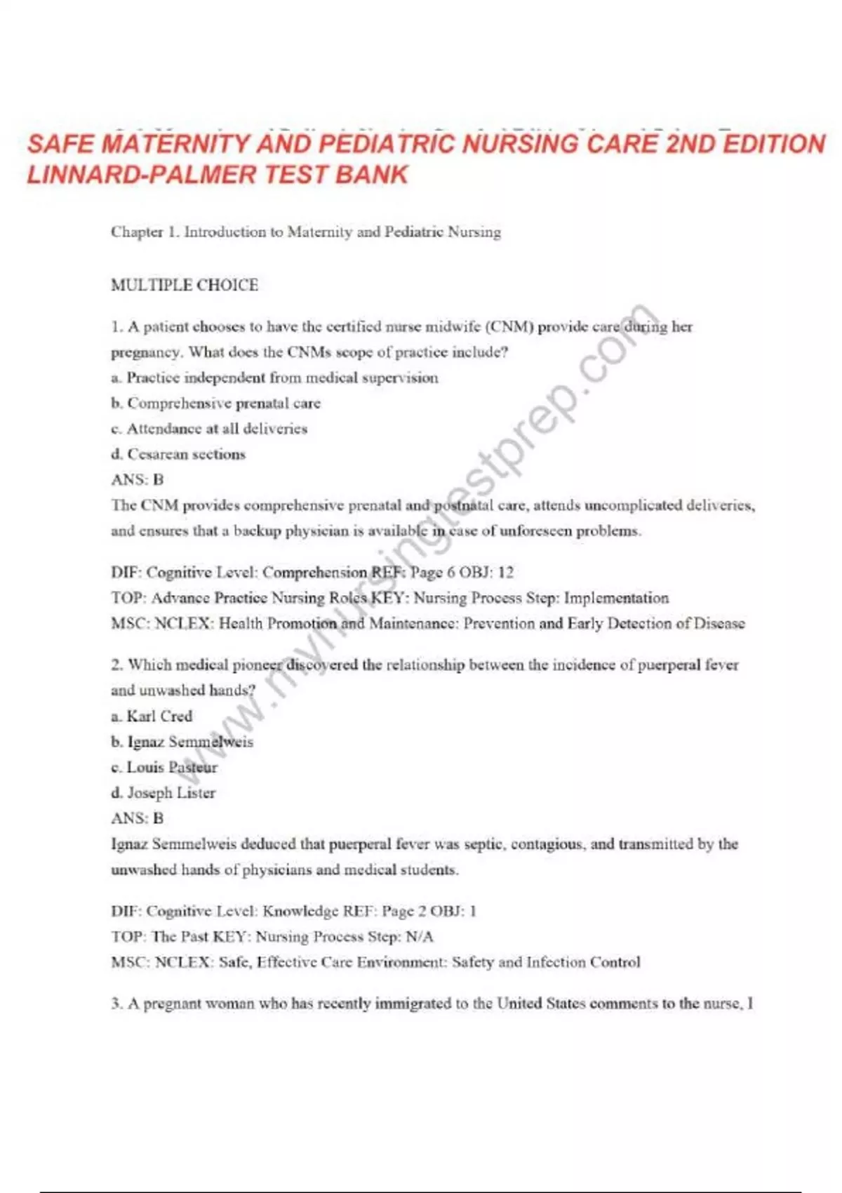Safe Maternity and Pediatric Nursing Care 2nd Edition Linnard-Palmer Test Bank