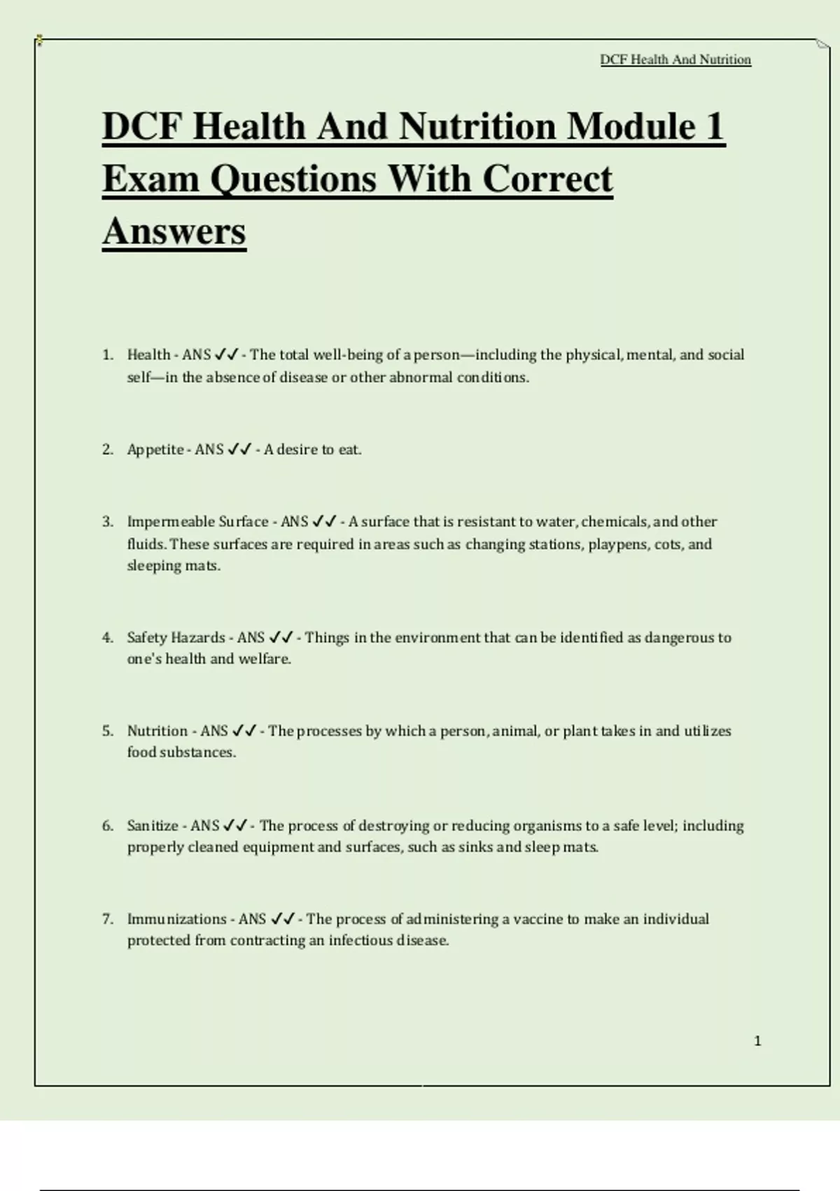 DCF Health And Nutrition Module 1 Exam Questions With Correct Answers