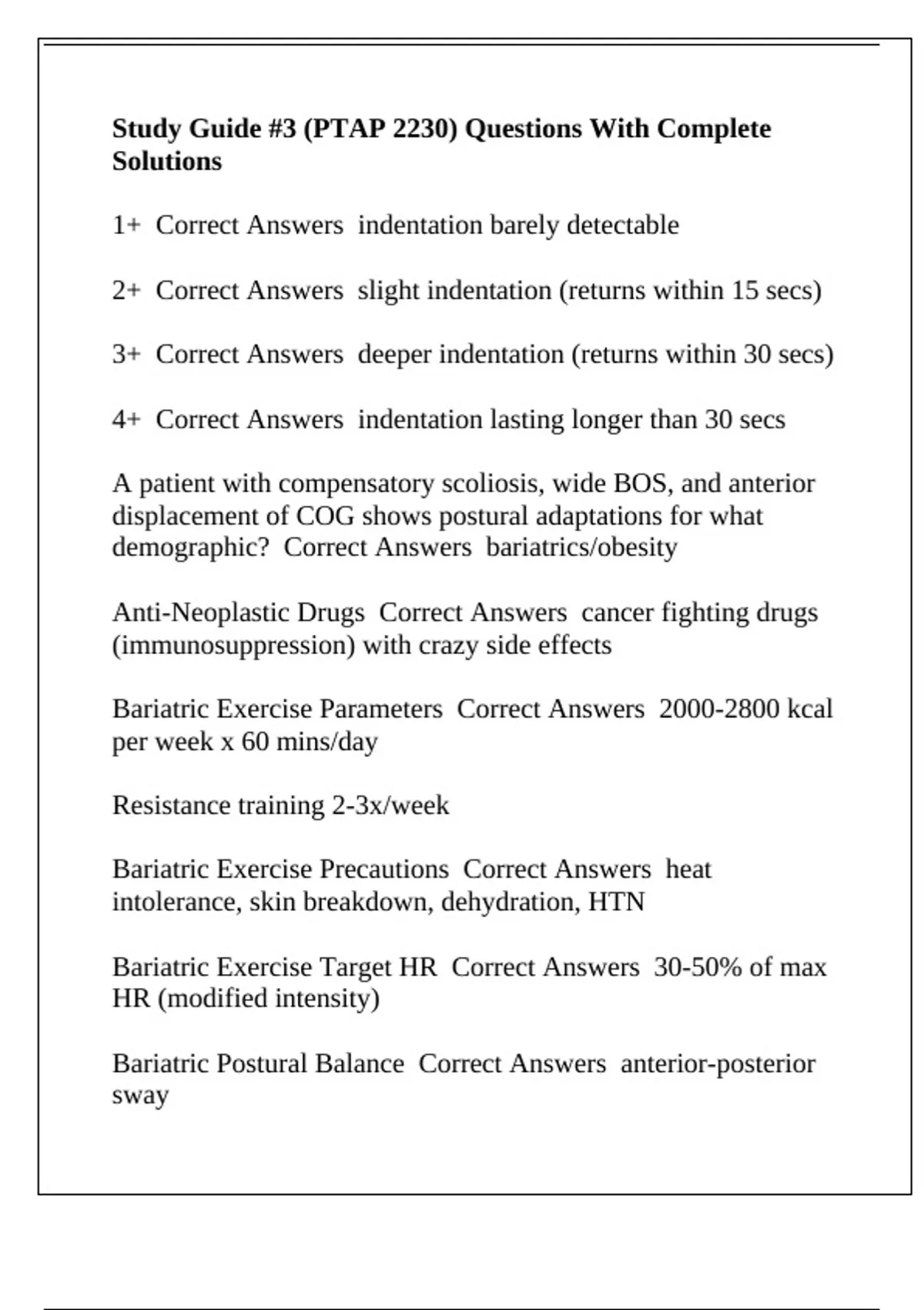 Study Guide #3 (PTAP 2230) Questions With Complete