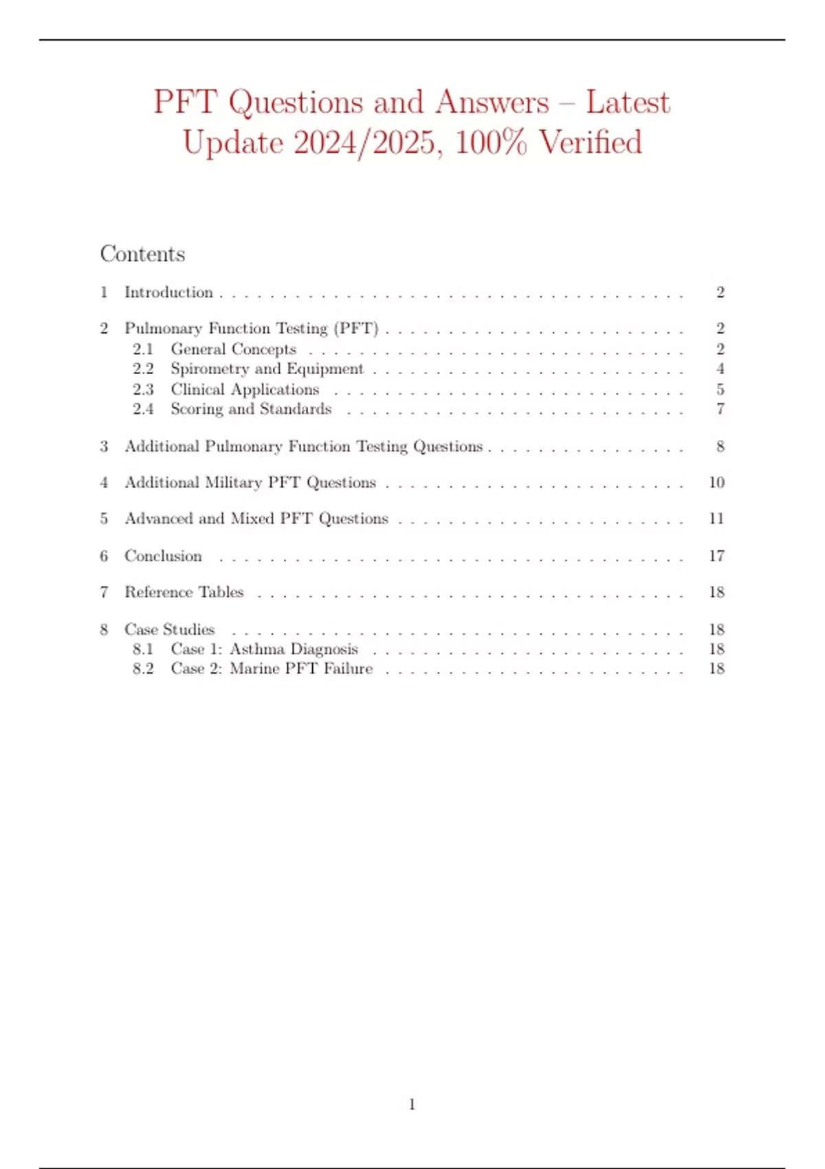 2 Pulmonary Function Testing (PFT) . . . . . . . . . . . . . . . . . . . . . . . . 2