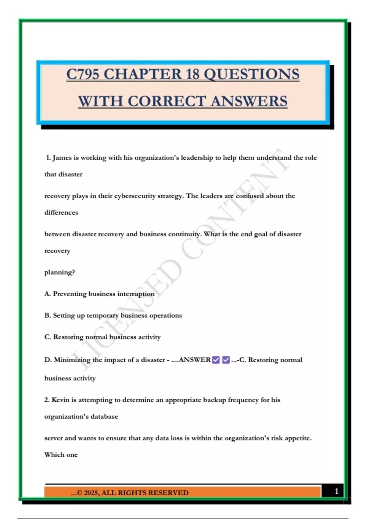 D. Minimizing the impact of a disaster - ....ANSWER ...-C. Restoring normal