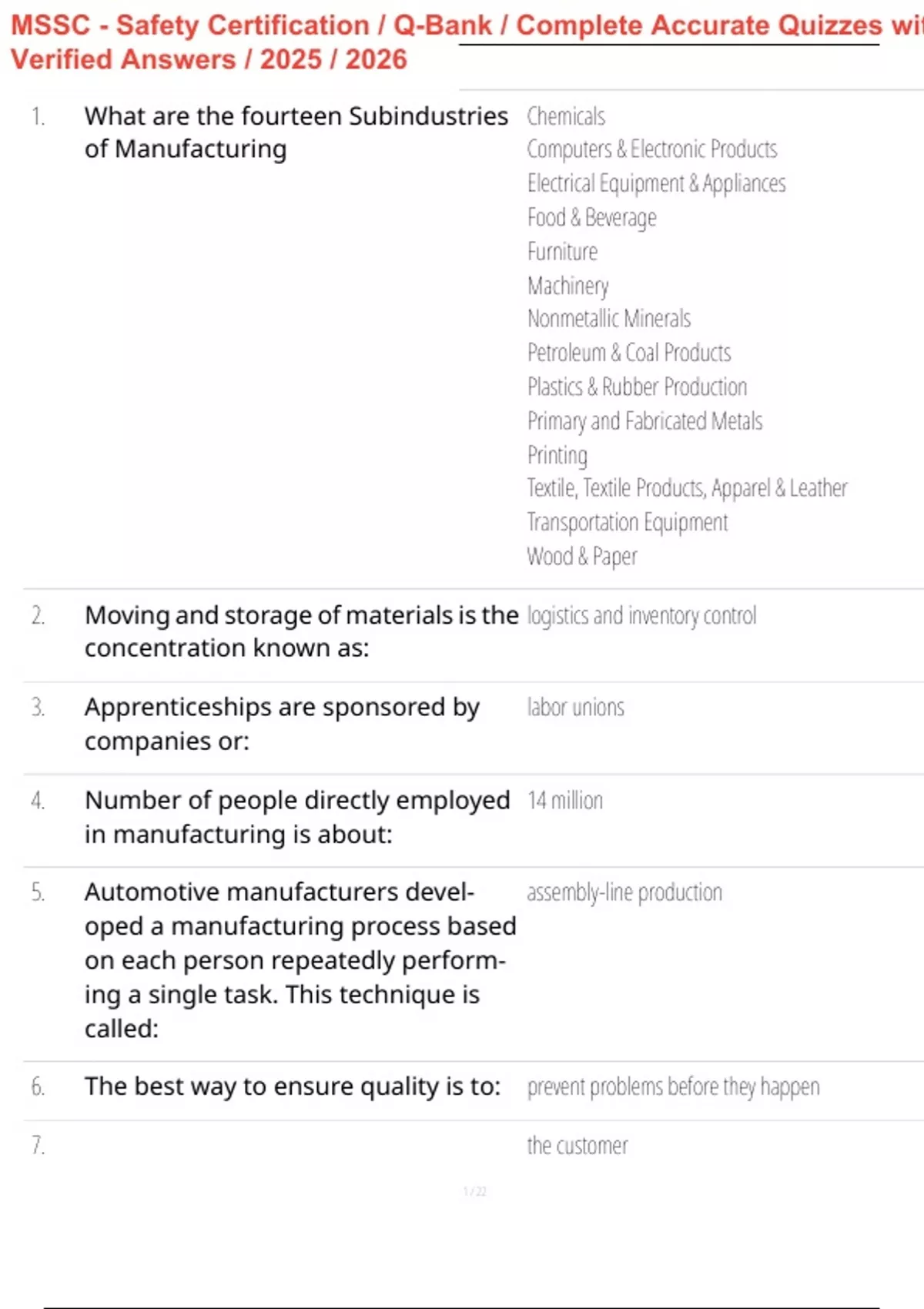 MSSC - Safety Certification / Q-Bank / Complete Accurate Quizzes wit