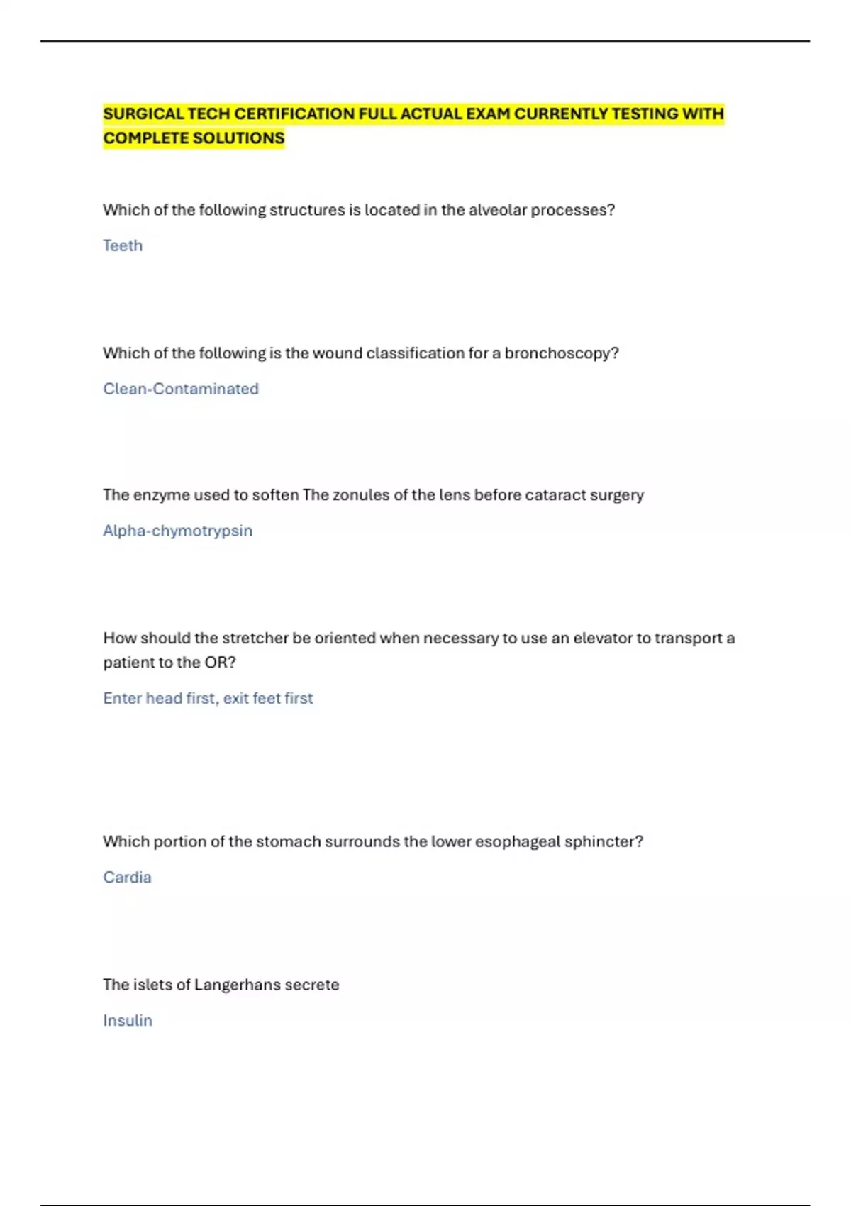 SURGICAL TECH CERTIFICATION FULL ACTUAL EXAM CURRENTLY TESTING WITH