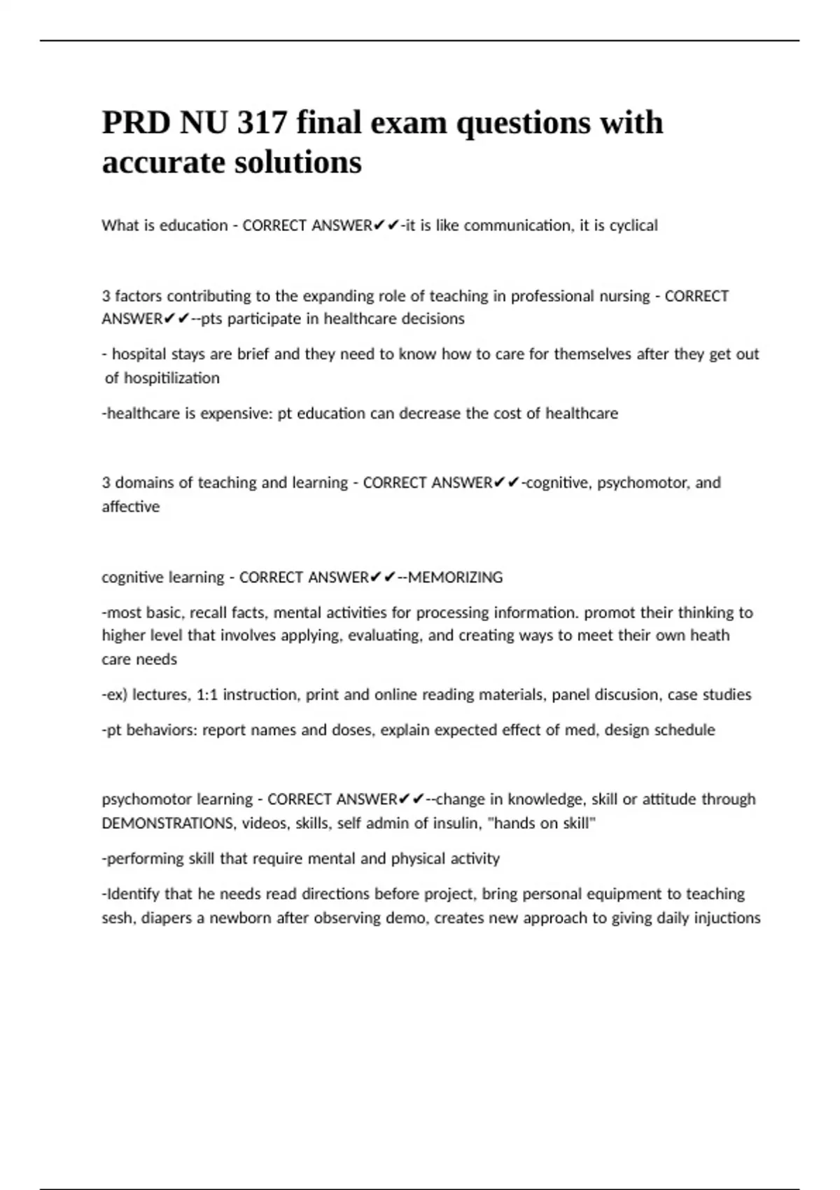 3 |domains |of |teaching |and |learning |- |CORRECT |ANSWER✔✔-cognitive, |psychomotor, |and |