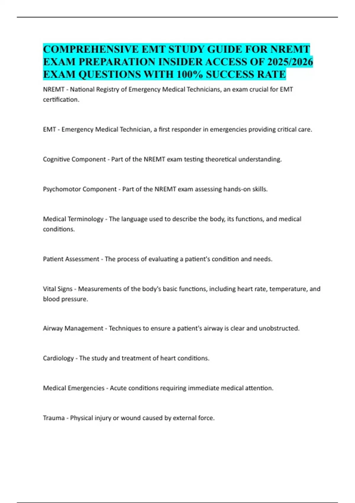 Study materials for NREMT exam - All content covered in the EMT course materials.