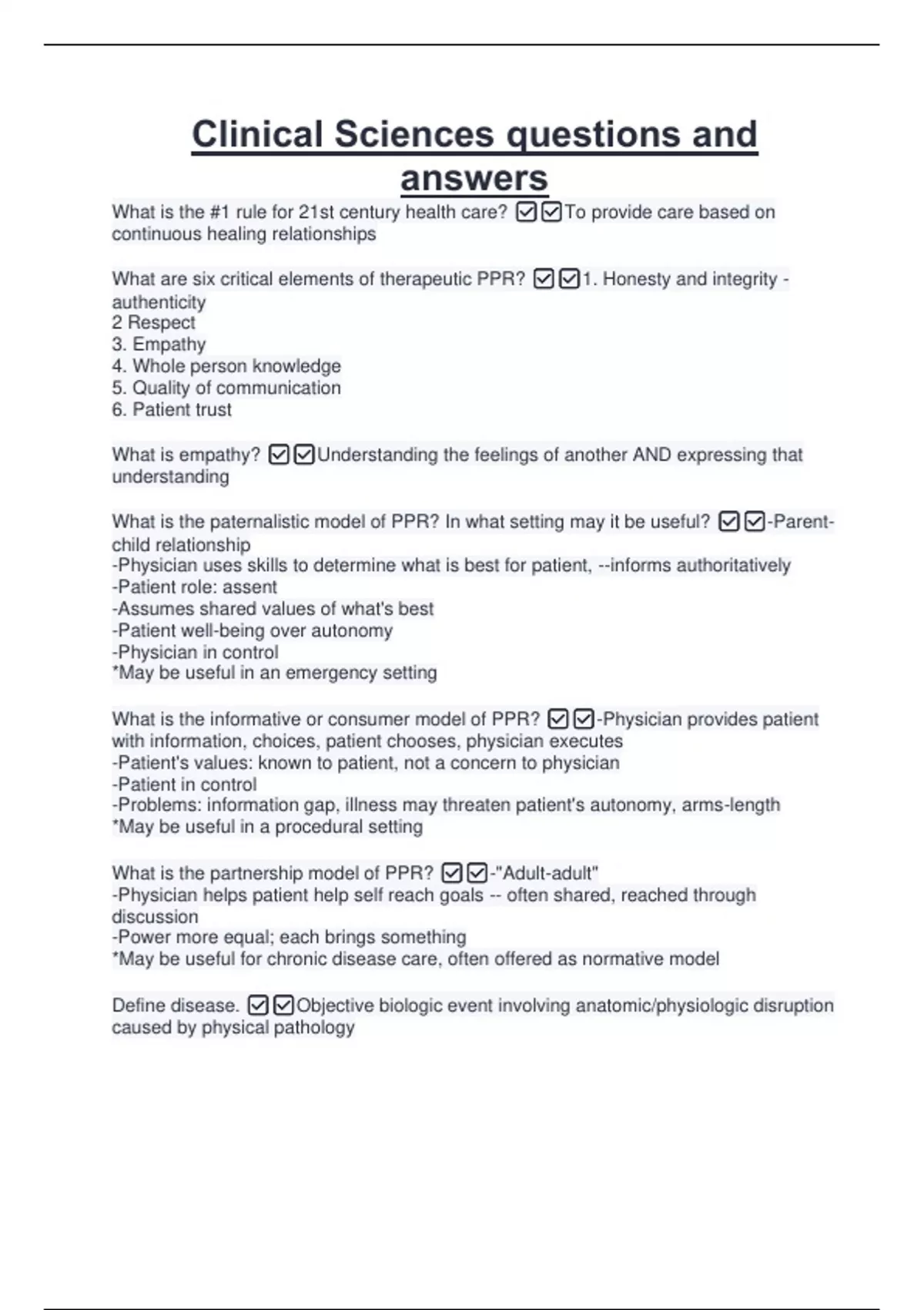 What are six critical elements of therapeutic PPR? ✅✅1. Honesty and integrity -