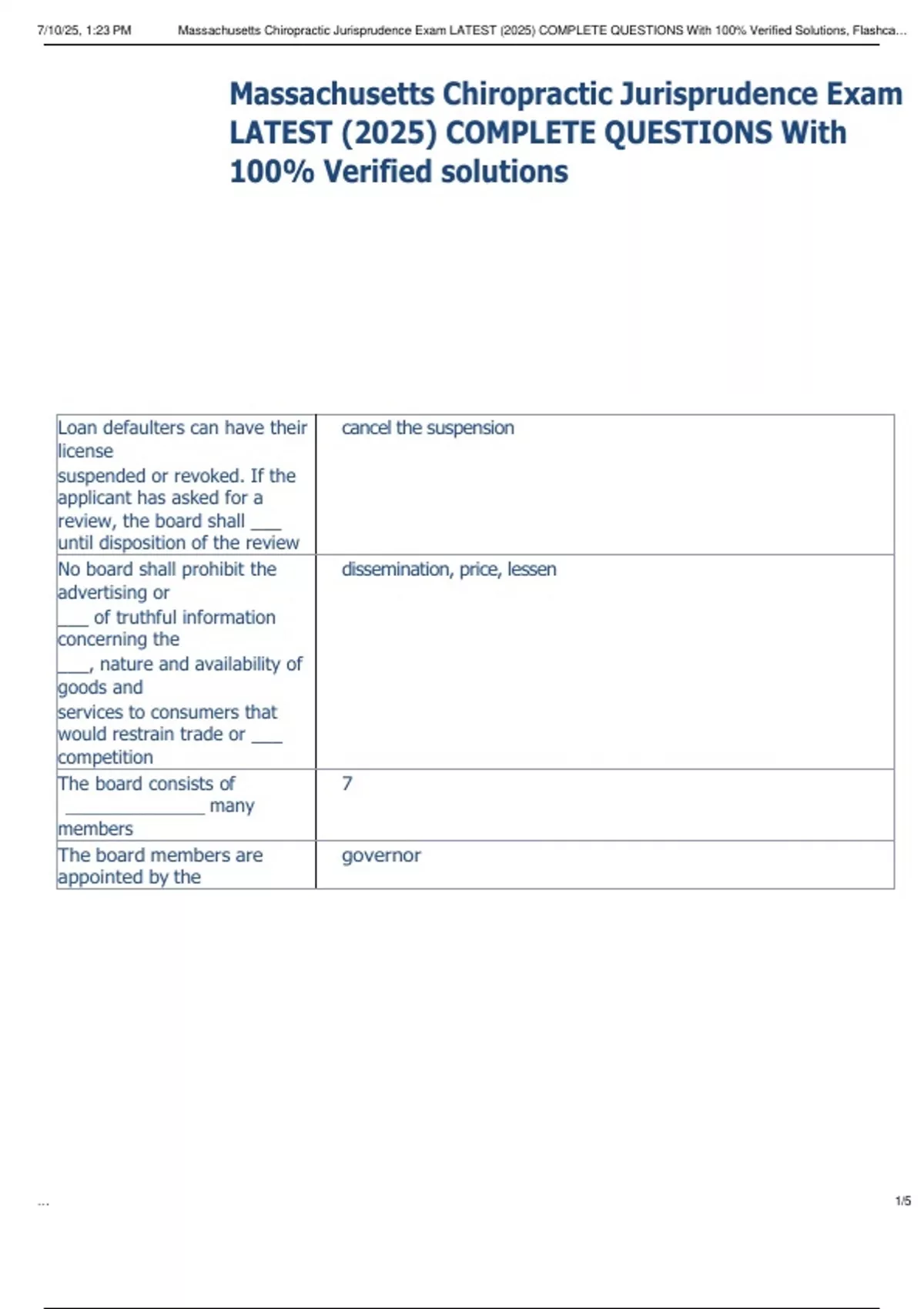 , 7/10/25, 1:23 PM Massachusetts Chiropractic Jurisprudence Exam LATEST (2025) COMPLETE QUESTIONS With 100% Verified Solutions, Flashca…