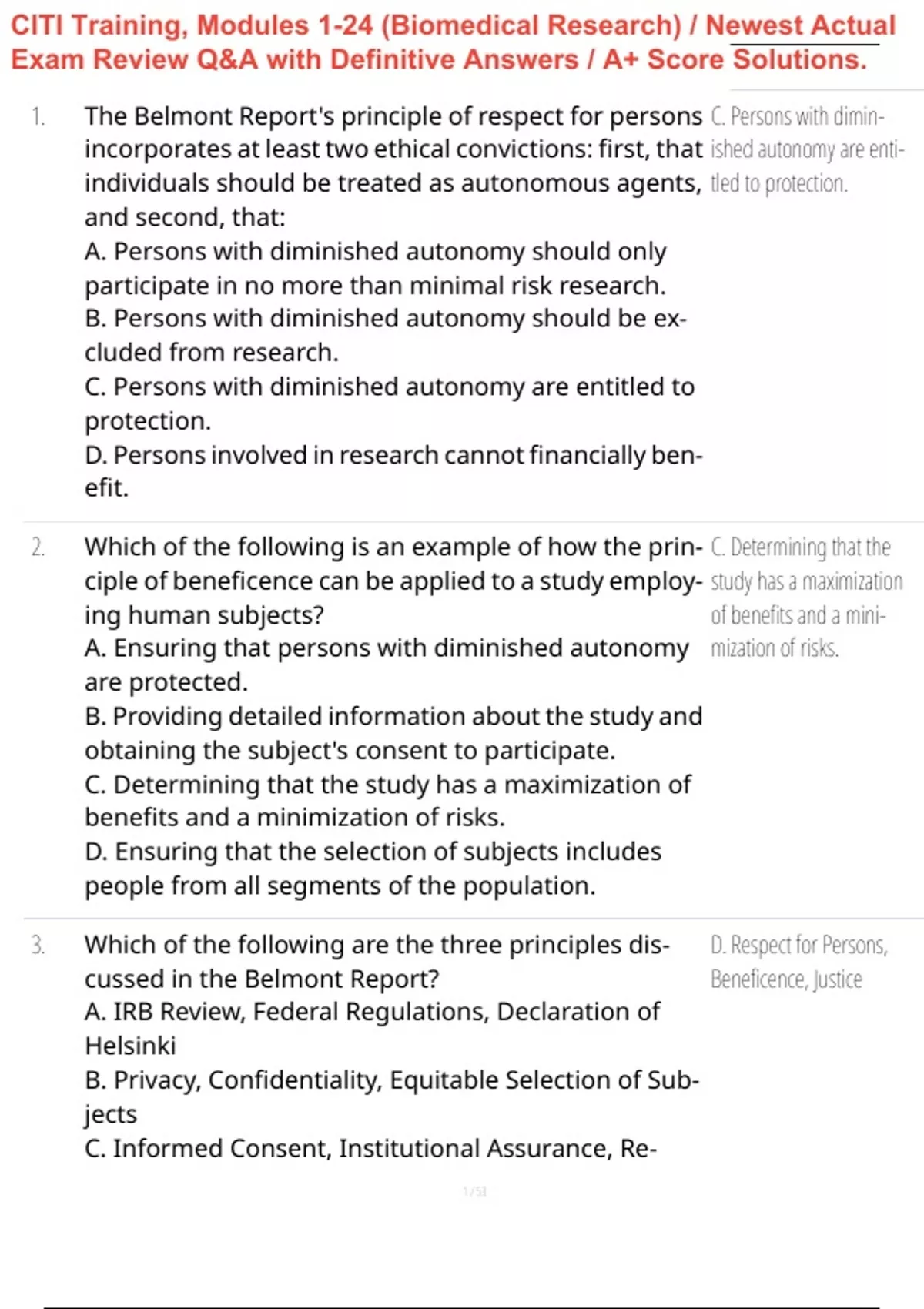 CITI Training, Modules 1-24 (Biomedical Research) / Newest Actual
