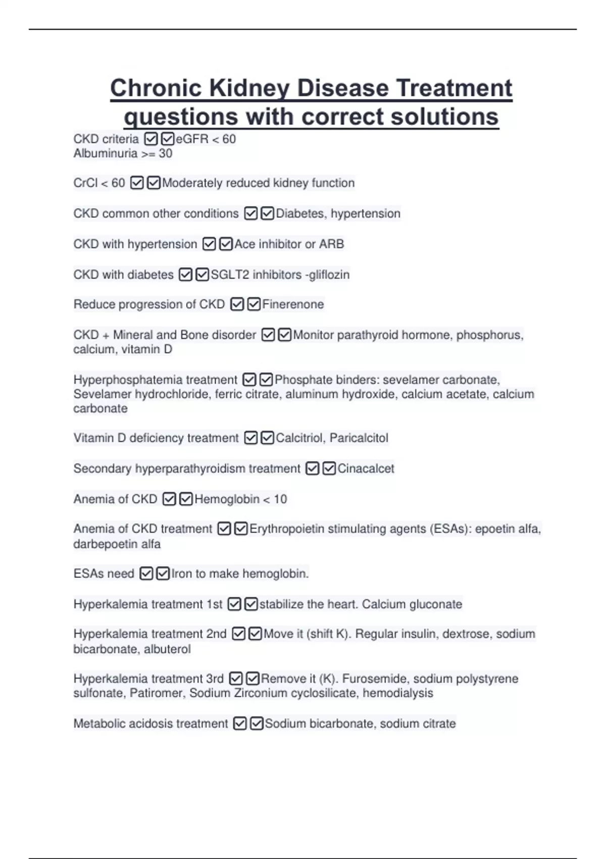 Chronic Kidney Disease Treatment questions with correct solutions