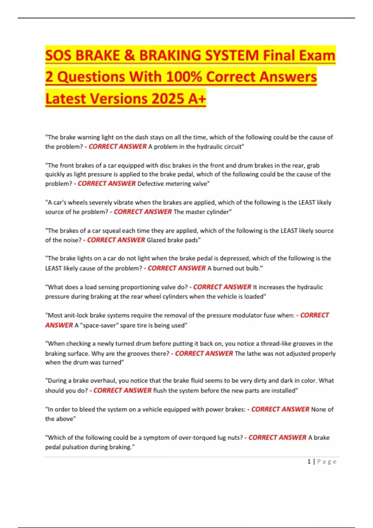 SOS BRAKE & BRAKING SYSTEM Final Exam
