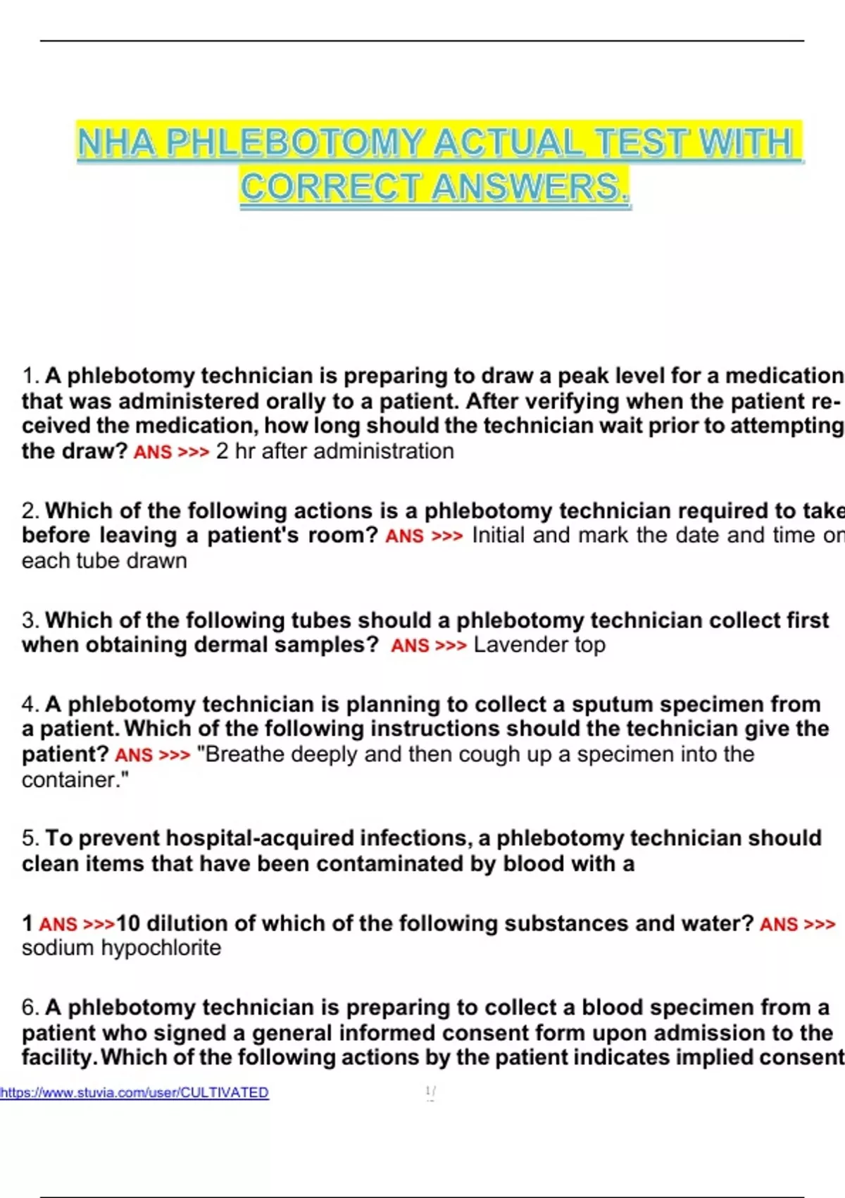 1. A phlebotomy technician is preparing to draw a peak level for a medication