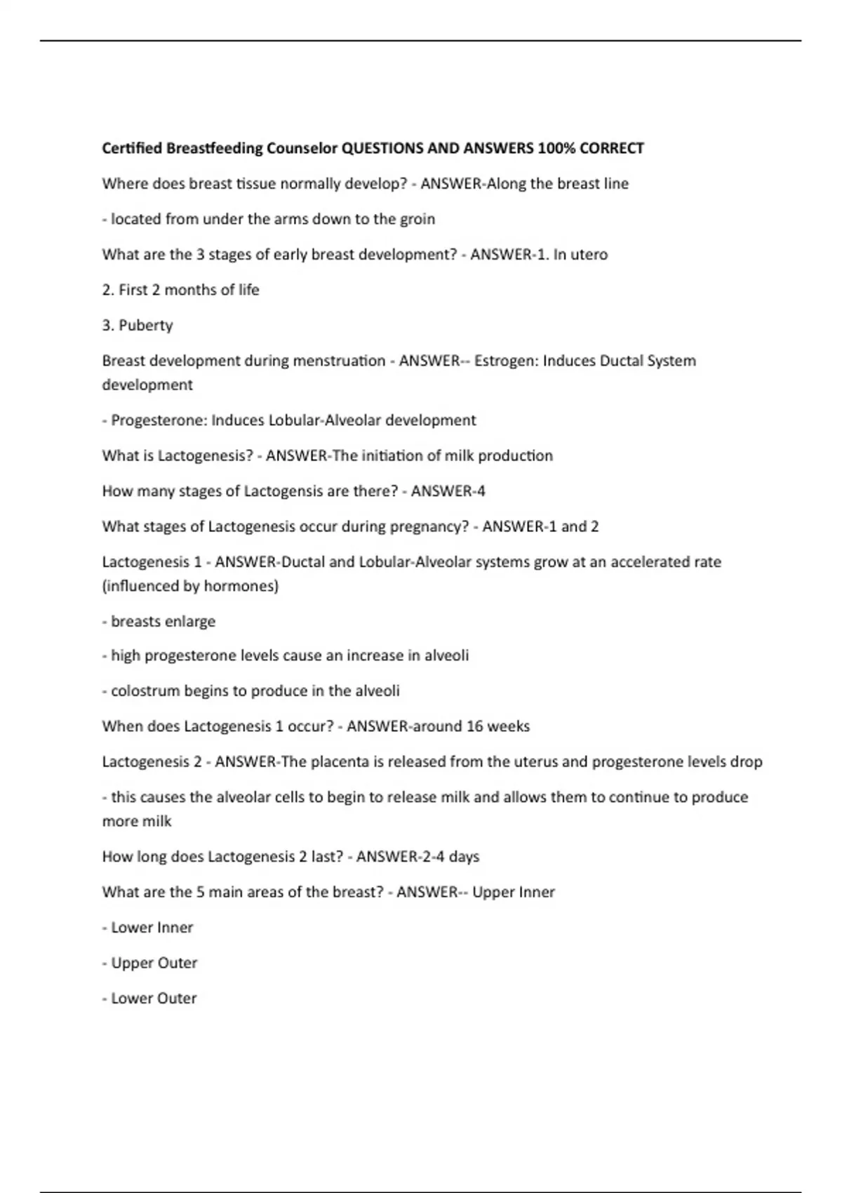 Certified Breastfeeding Counselor QUESTIONS AND ANSWERS 100% CORRECT